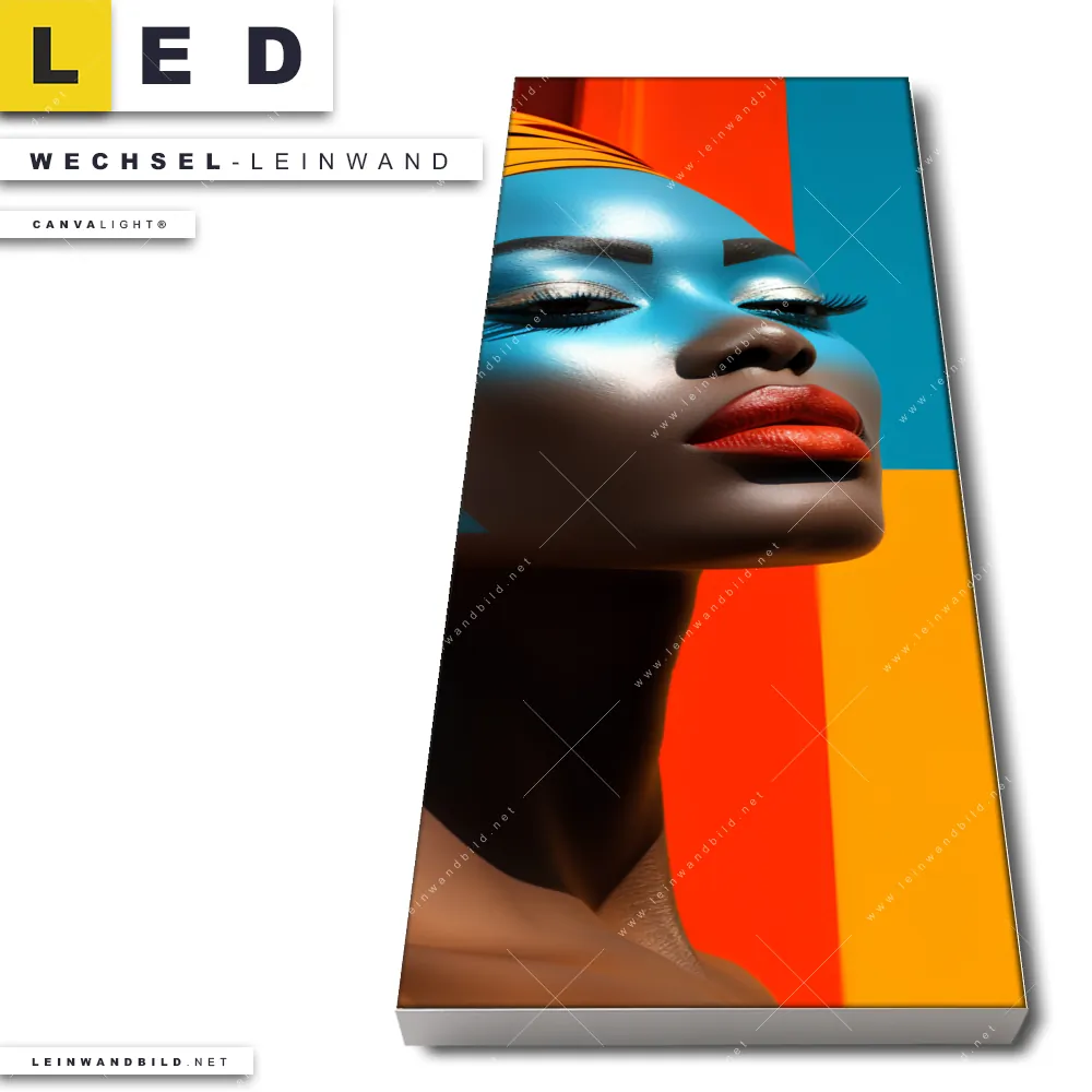 Du bist auf der Suche nach einer Porträts - Menschen Wechsel-Leinwand für Dein LED-Leinwandbild im Schmalen Format? Begriffe wie Afrika, Afrikanische Frau, Kultur, Charakterstärke, Kühnheit haben Dich auf der Suche nach Deiner Ersatz-Leinwand für dein LED Wandbild im Panorama-Hochformat mit wechselbarer Leinwand inspiriert? Farben wie Blau, Braun, Rot, Orange dürfen auf Deinem neuen Wechselmotiv für Dein XXL Leinwand-LED-Bild nicht fehlen und Leinwände im Modern Art Stil für Leuchtbilder passen perfekt zu Deinem Einrichtungsstil?