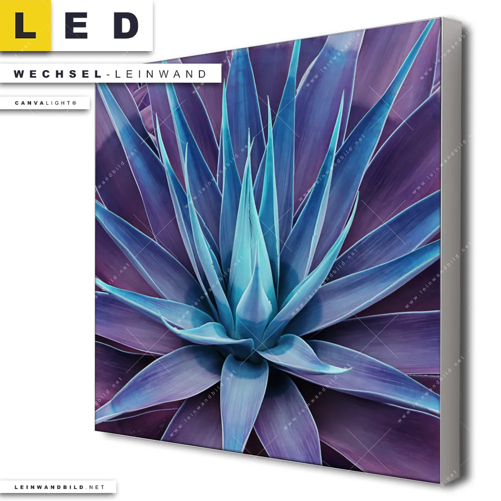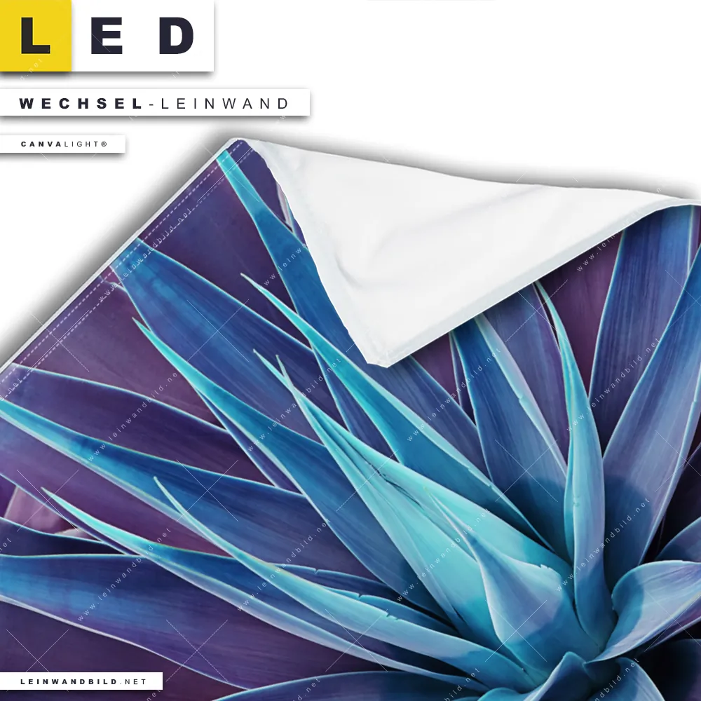 Du konfigurierst Deine individuelle LED Wechsel-Leinwand Canvalight® TEX | Agavenblätter | Quadrat und wir produzieren sie NEU für Dich. Unsere Blumen - Botanik Austausch-Fotoleinwände für Canvalight® LED Bilder sind KEINE Lagerware. Du bist Dir unsicher, welches Motiv oder Format das richtige für dein individuelles LED Wechselmotiv auf Leinwand ist, dann helfen wir dir gerne weiter und beraten dich!