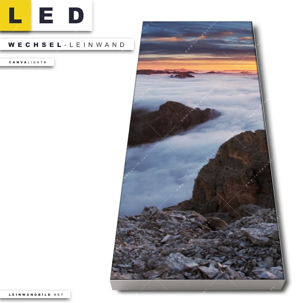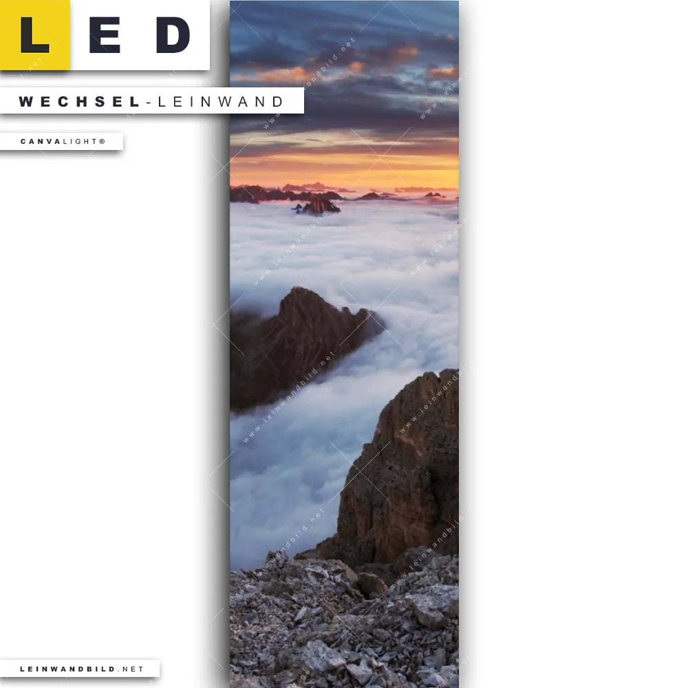 Du bist auf der Suche nach einer Landschaften Wechsel-Leinwand für Dein LED-Leinwandbild im Schmalen Format? Begriffe wie Landschaft, Natur, Stille, Berge, Sonnenuntergang, Sonnenaufgang, Sonne, Gebirge, Nebel, Steine haben Dich auf der Suche nach Deiner Ersatz-Leinwand für dein LED Wandbild im Panorama-Hochformat mit wechselbarer Leinwand inspiriert? Farben wie Orange, Blau, Rot, Weiss, Braun, Bunt, Hellblau dürfen auf Deinem neuen Wechselmotiv für Dein XXL Leinwand-LED-Bild nicht fehlen und Leinwände im Natürlich - Realistisch, Mixed Media Stil für Leuchtbilder passen perfekt zu Deinem Einrichtungsstil?