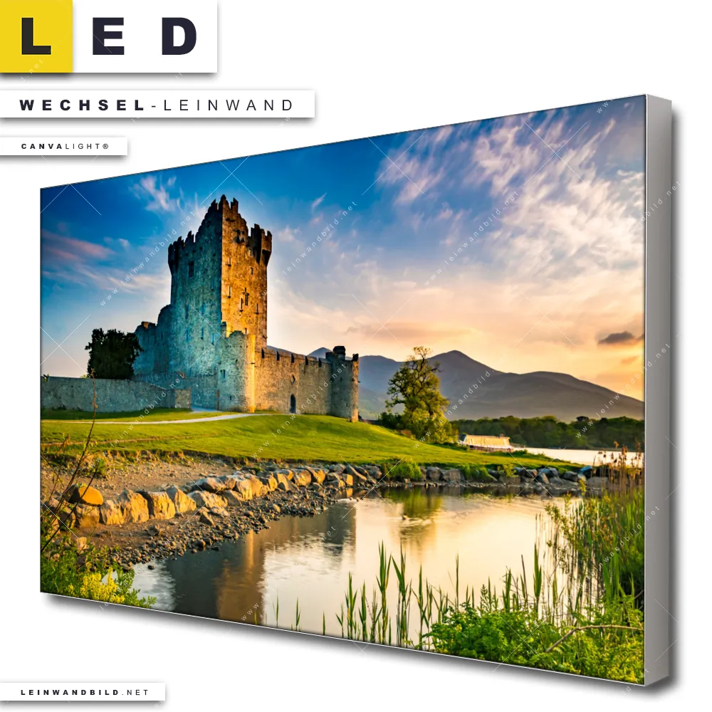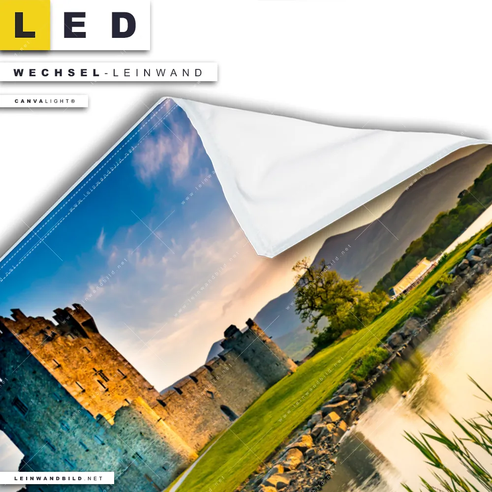 Du bist auf der Suche nach einer Architektur - Gebäude, Landschaften Wechsel-Leinwand für Dein LED-Leinwandbild im Querformat? Begriffe wie Schottland, Burg, Festung, Landschaft, See, Fluss haben Dich auf der Suche nach Deiner Ersatz-Leinwand für dein breites LED Wandbild mit wechselbarer Leinwand inspiriert? Farben wie Blau, Grün, Grau , Gelb dürfen auf Deinem neuen Wechselmotiv für Dein XXL Leinwand-LED-Bild nicht fehlen und Leinwände im Natürlich - Realistisch Stil für Leuchtbilder passen perfekt zu Deinem Einrichtungsstil?