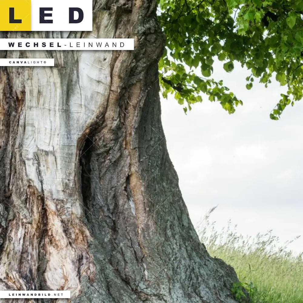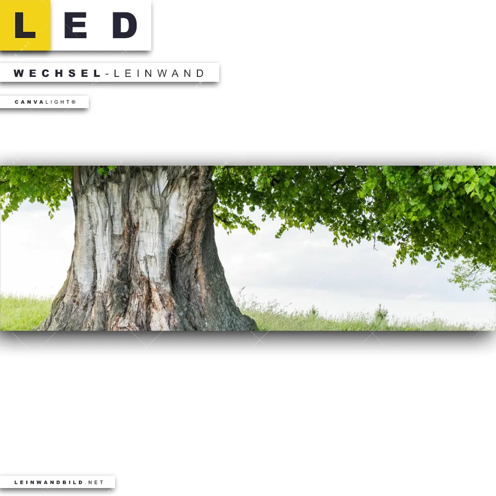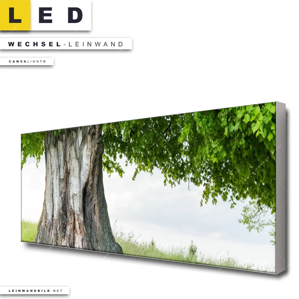 LED Wechsel-Leinwand Canvalight® TEX | Alte Linde auf Sommerwiese | Panorama