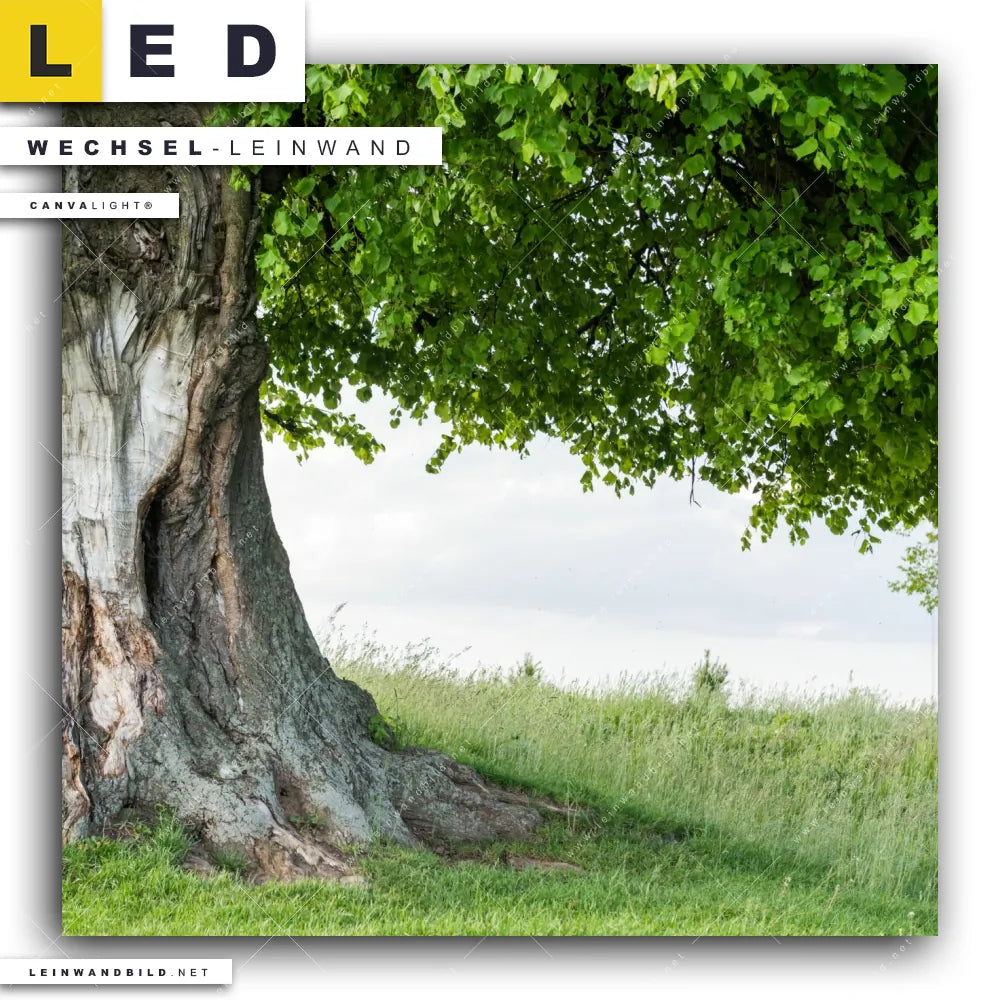 Du konfigurierst Deine individuelle LED Wechsel-Leinwand Canvalight® TEX | Alte Linde auf Sommerwiese | Quadrat und wir produzieren sie NEU für Dich. Unsere Landschaften, Wald - Bäume Austausch-Fotoleinwände für Canvalight® LED Bilder sind KEINE Lagerware. Du bist Dir unsicher, welches Motiv oder Format das richtige für dein individuelles LED Wechselmotiv auf Leinwand ist, dann helfen wir dir gerne weiter und beraten dich!
