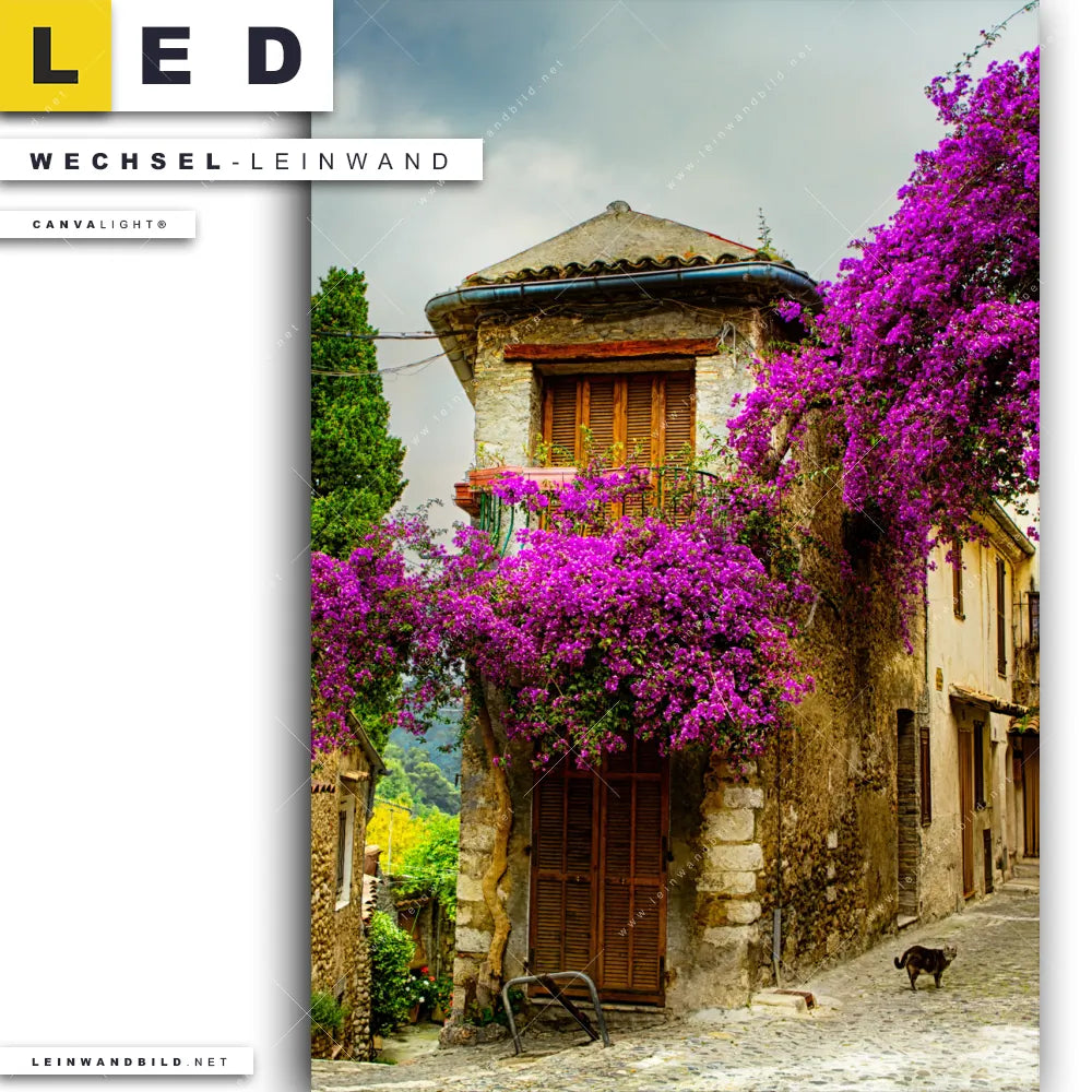 Du bist auf der Suche nach einer Architektur - Gebäude Wechsel-Leinwand für Dein LED-Leinwandbild im Hochformat? Begriffe wie Blumen | Botanik, Pflanze, Natur, Blüte, romantisch, Reisen, Provence, Altstadt, Frankreich haben Dich auf der Suche nach Deiner Ersatz-Leinwand für dein LED Wandbild mit wechselbarer Leinwand inspiriert? Farben wie Rosa, Orange, Lila, Ocker, Gelb , Beige, Braun dürfen auf Deinem neuen Wechselmotiv für Dein XXL Leinwand-LED-Bild nicht fehlen und Leinwände im Natürlich - Realistisch Stil für Leuchtbilder passen perfekt zu Deinem Einrichtungsstil?