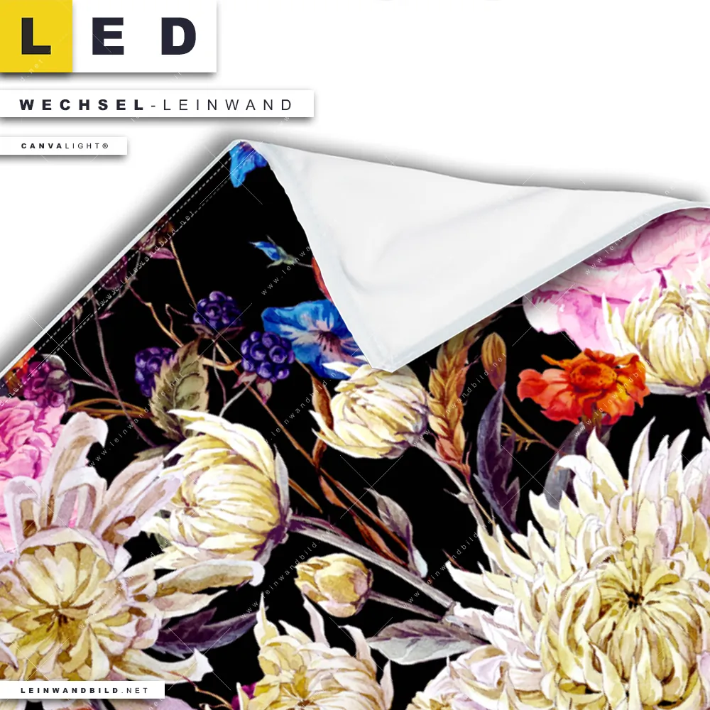 LED Wechsel-Leinwand Canvalight® TEX | Aquarell von wilden Blumen | Hochformat
