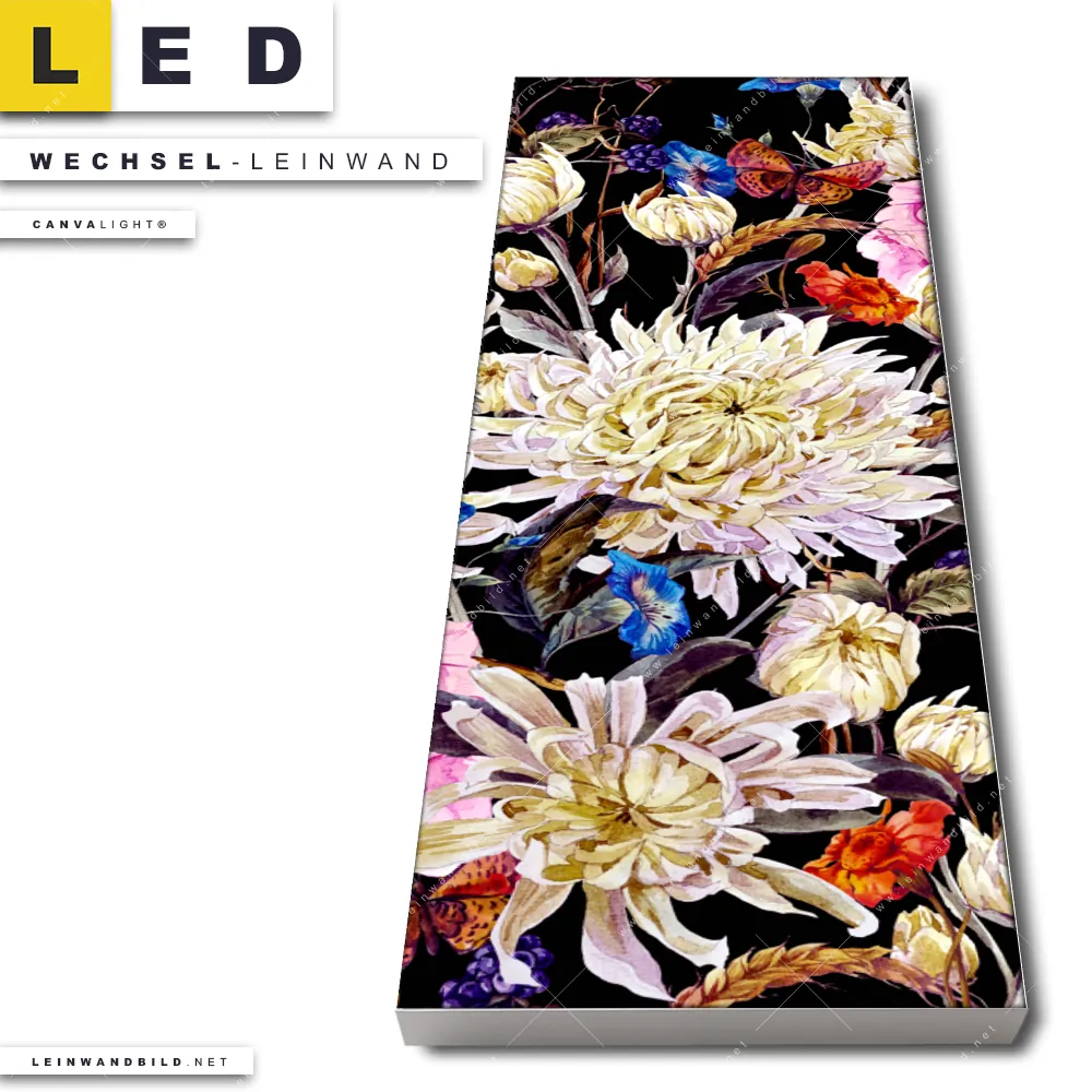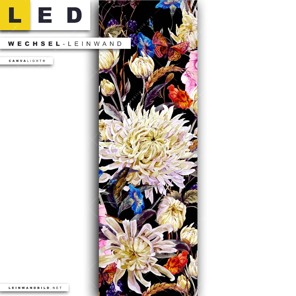 Du bist auf der Suche nach einer Blumen - Botanik Wechsel-Leinwand für Dein LED-Leinwandbild im Schmalen Format? Begriffe wie Blume, Botanik, Pflanze, Natur, Aquarell, Wasserfarbe, Blumen, romantisch, Blüten, Bouquet, Blumenstrauß, Schmetterling haben Dich auf der Suche nach Deiner Ersatz-Leinwand für dein LED Wandbild im Panorama-Hochformat mit wechselbarer Leinwand inspiriert? Farben wie Weiss, Schwarz, Blau, Lila, Orange, Rot, Rosa dürfen auf Deinem neuen Wechselmotiv für Dein XXL Leinwand-LED-Bild nicht fehlen und Leinwände im Floral, Retro - Vintage Stil für Leuchtbilder passen perfekt zu Deinem Einrichtungsstil?