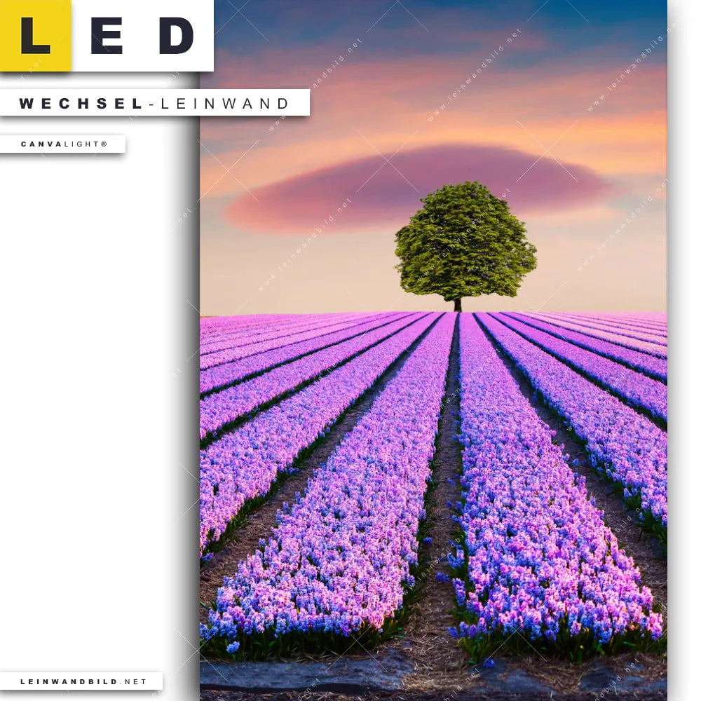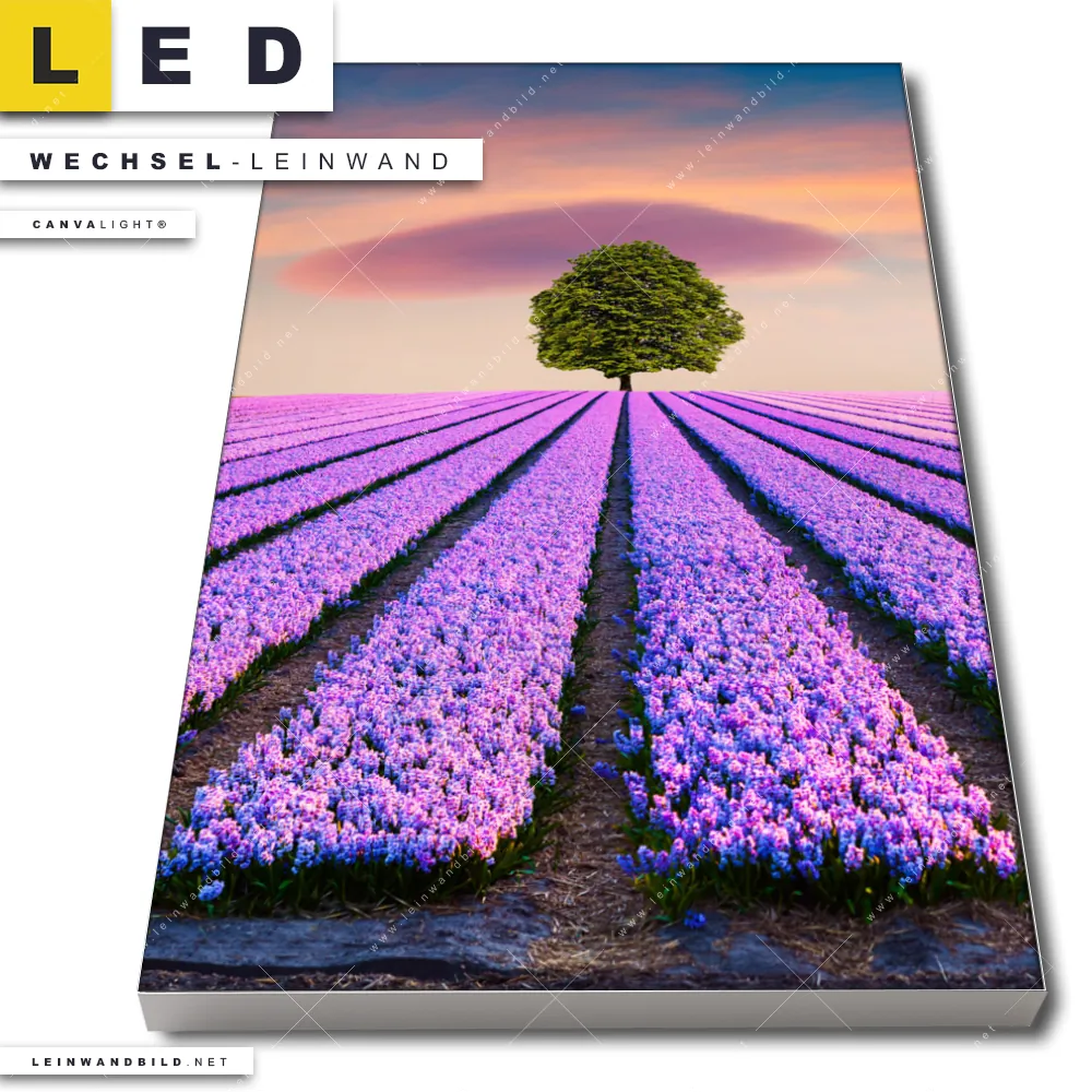Du bist auf der Suche nach einer Landschaften Wechsel-Leinwand für Dein LED-Leinwandbild im Hochformat? Begriffe wie Blumen, Baum, Feld, Sonnenuntergang, Wiese, Himmel, Hyazinthenblumen, Hyazinthen haben Dich auf der Suche nach Deiner Ersatz-Leinwand für dein LED Wandbild mit wechselbarer Leinwand inspiriert? Farben wie Lila, Orange dürfen auf Deinem neuen Wechselmotiv für Dein XXL Leinwand-LED-Bild nicht fehlen und Leinwände im Floral, Natürlich - Realistisch Stil für Leuchtbilder passen perfekt zu Deinem Einrichtungsstil?