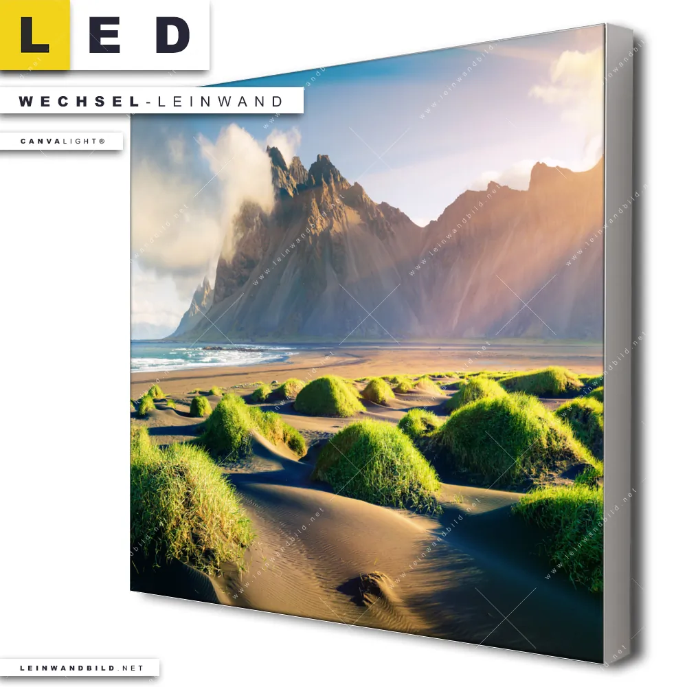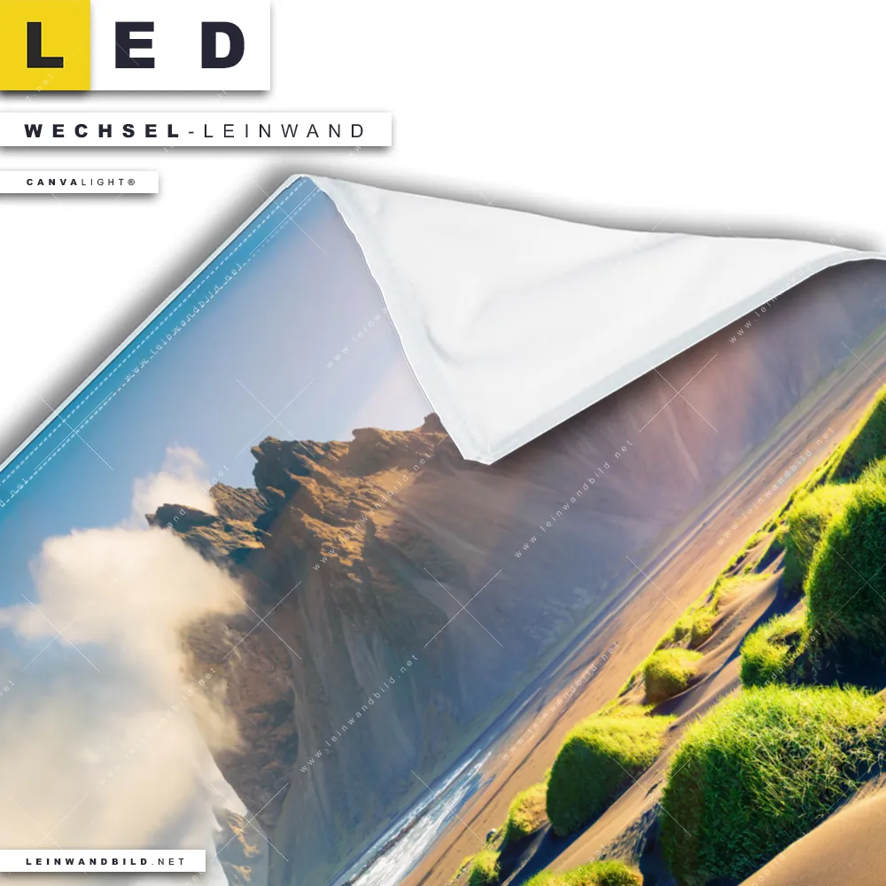 Du konfigurierst Deine individuelle LED Wechsel-Leinwand Canvalight® TEX | Beeindruckendes Island | Quadrat und wir produzieren sie NEU für Dich. Unsere Landschaften Austausch-Fotoleinwände für Canvalight® LED Bilder sind KEINE Lagerware. Du bist Dir unsicher, welches Motiv oder Format das richtige für dein individuelles LED Wechselmotiv auf Leinwand ist, dann helfen wir dir gerne weiter und beraten dich!
