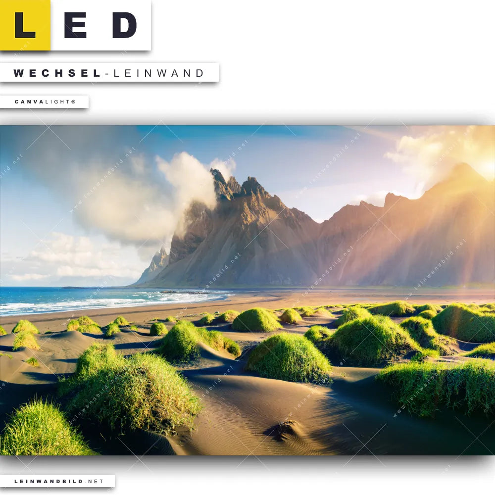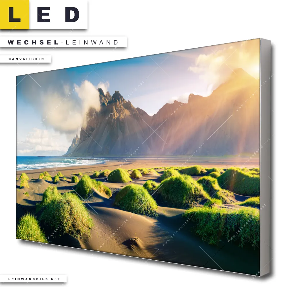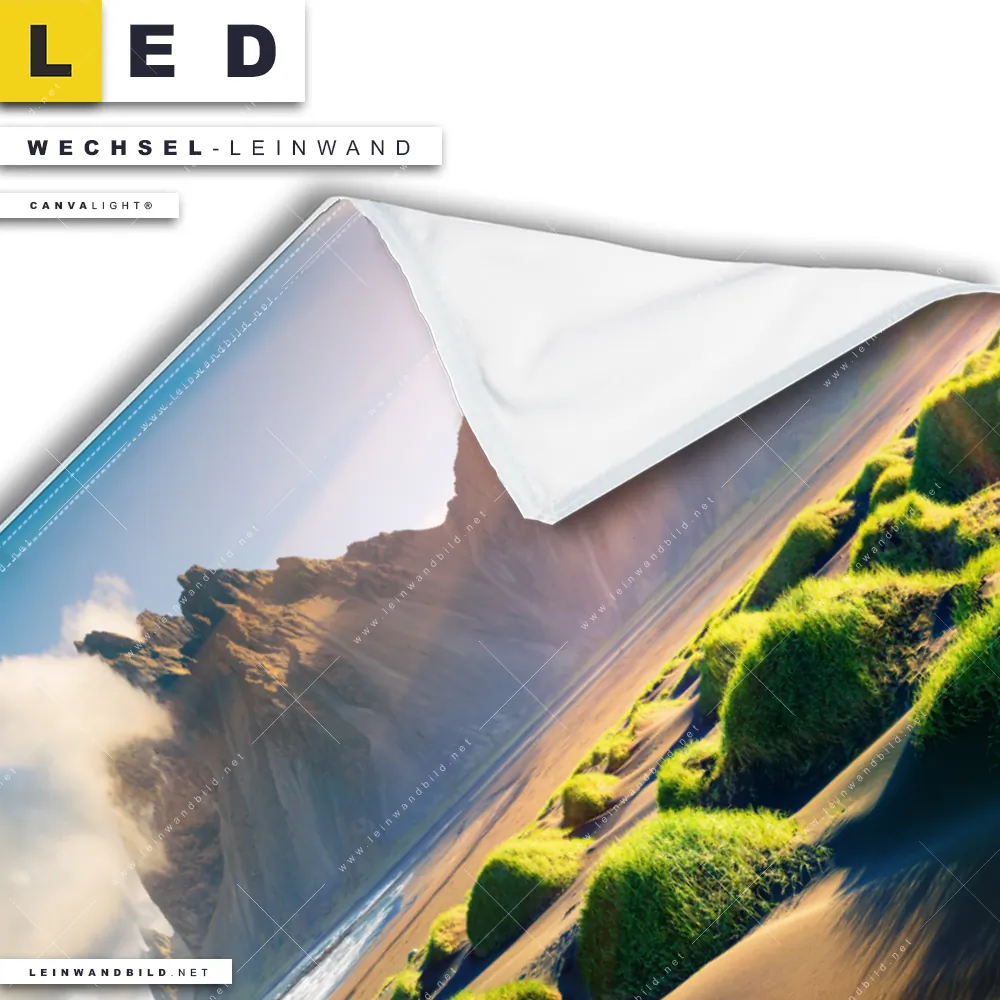 LED Wechsel-Leinwand Canvalight® TEX | Beeindruckendes Island | Querformat