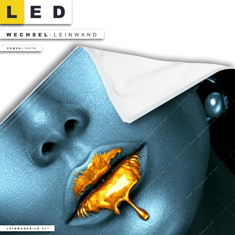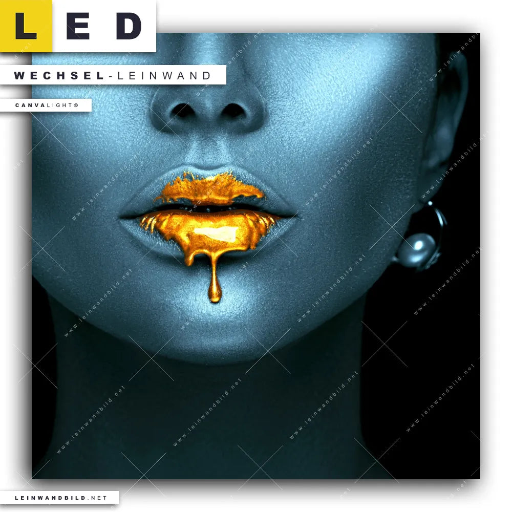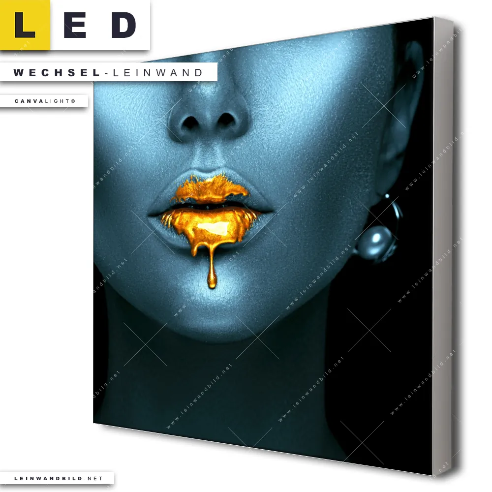 Du bist auf der Suche nach einer Porträts - Menschen Wechsel-Leinwand für Dein LED-Leinwandbild im Quadratischen Format? Begriffe wie Frau, Lippen, Mund, Porträt, Farbe, Beauty haben Dich auf der Suche nach Deiner Ersatz-Leinwand für dein LED Wandbild mit wechselbarer Leinwand inspiriert? Farben wie Gold, Schwarz, Blau dürfen auf Deinem neuen Wechselmotiv für Dein XXL Leinwand-LED-Bild nicht fehlen und Leinwände im Modern Art Stil für Leuchtbilder passen perfekt zu Deinem Einrichtungsstil?