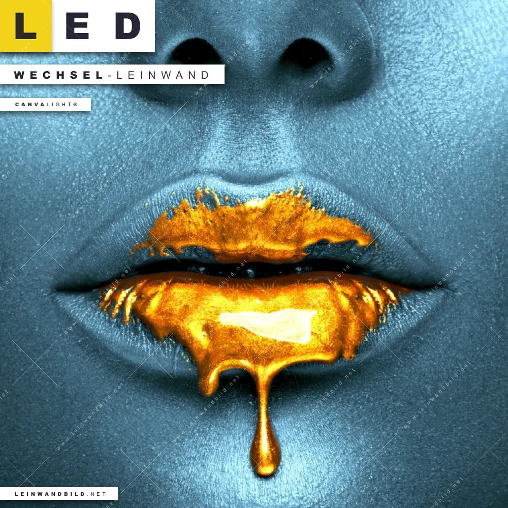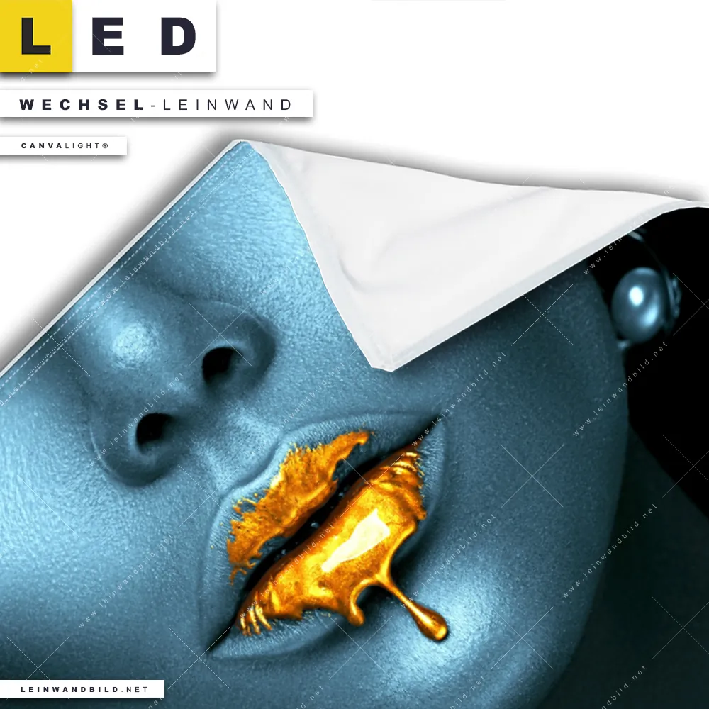 Du bist auf der Suche nach einer Porträts - Menschen Wechsel-Leinwand für Dein LED-Leinwandbild im Querformat? Begriffe wie Frau, Lippen, Mund, Porträt, Farbe, Beauty haben Dich auf der Suche nach Deiner Ersatz-Leinwand für dein breites LED Wandbild mit wechselbarer Leinwand inspiriert? Farben wie Gold, Schwarz, Blau dürfen auf Deinem neuen Wechselmotiv für Dein XXL Leinwand-LED-Bild nicht fehlen und Leinwände im Modern Art Stil für Leuchtbilder passen perfekt zu Deinem Einrichtungsstil?