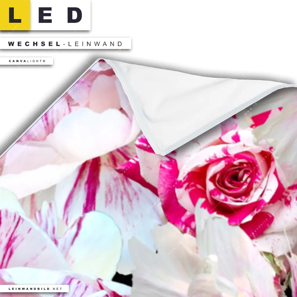 Du bist auf der Suche nach einer Blumen - Botanik Wechsel-Leinwand für Dein LED-Leinwandbild im Panorama-Format? Begriffe wie Pflanze, Natur, Blüte, Nahaufnahme, Draufsicht, vintage, Blumen, Rosen, Blüten, Pfingstrosen, Blumenstrauß haben Dich auf der Suche nach Deiner Ersatz-Leinwand für dein extra breites LED Wandbild mit wechselbarer Leinwand inspiriert? Farben wie Pink, Rosa, Lila, Weiss, Grün dürfen auf Deinem neuen Wechselmotiv für Dein XXL Leinwand-LED-Bild nicht fehlen und Leinwände im Floral, Natürlich - Realistisch Stil für Leuchtbilder passen perfekt zu Deinem Einrichtungsstil?