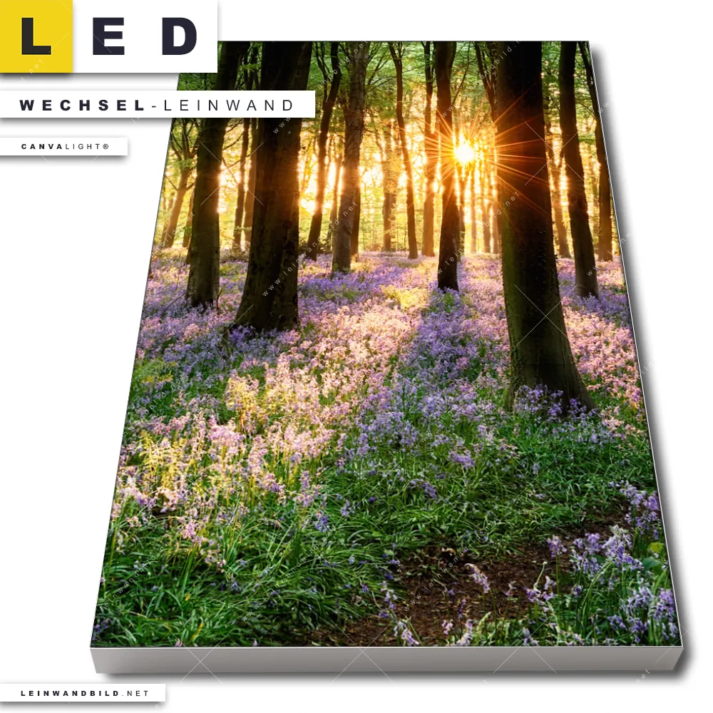 Du konfigurierst Deine individuelle LED Wechsel-Leinwand Canvalight® TEX | Blühender Wald bei Sonnenaufgang | Hochformat und wir produzieren sie NEU für Dich. Unsere Blumen - Botanik, Landschaften, Wald - Bäume Austausch-Fotoleinwände für Canvalight® LED Bilder sind KEINE Lagerware. Du bist Dir unsicher, welches Motiv oder Format das richtige für dein individuelles LED Wechselmotiv auf Leinwand ist, dann helfen wir dir gerne weiter und beraten dich!