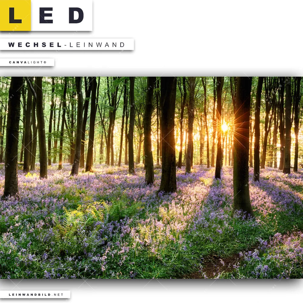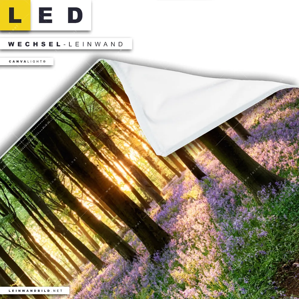 LED Wechsel-Leinwand Canvalight® TEX | Blühender Wald bei Sonnenaufgang | Querformat