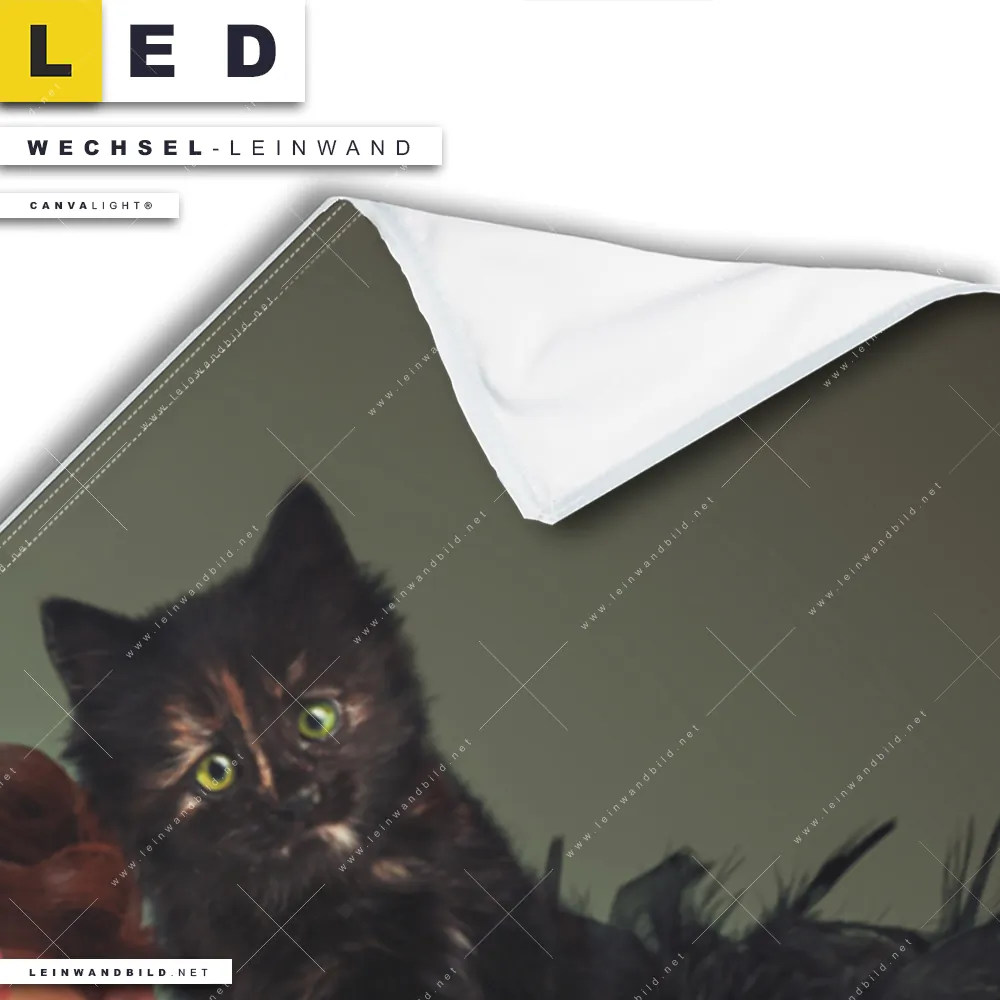 Bitte beachte, dass die Farben, der auf dem Monitor abgebildeten Frau mit schwarzer Katze Darstellung, möglicherweise von den Originalfarben deiner Canvalight® TEX Wechsel-Leinwand abweichen können.