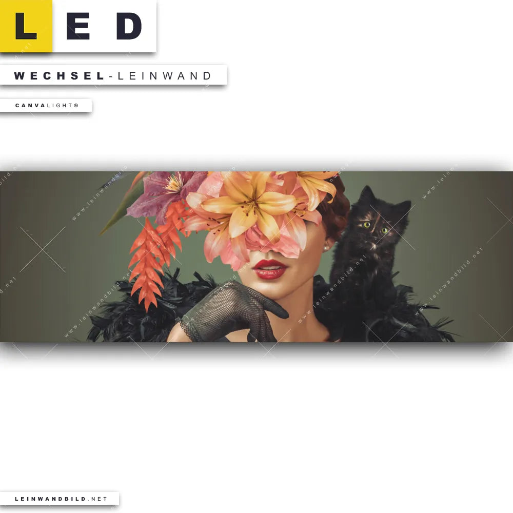 Du bist auf der Suche nach einer Porträts - Menschen, Blumen - Botanik Wechsel-Leinwand für Dein LED-Leinwandbild im Panorama-Format? Begriffe wie Menschen & Blumen, Frau, Porträt, modern, Beauty, Gesicht, Blumen, Blüten, Schönheit, Mode, Halloween, Katze, Echse, Kürbis haben Dich auf der Suche nach Deiner Ersatz-Leinwand für dein extra breites LED Wandbild mit wechselbarer Leinwand inspiriert? Farben wie Schwarz, Orange, Beige, Rot dürfen auf Deinem neuen Wechselmotiv für Dein XXL Leinwand-LED-Bild nicht fehlen und Leinwände im Modern Art, Floral Stil für Leuchtbilder passen perfekt zu Deinem Einrichtungsstil?