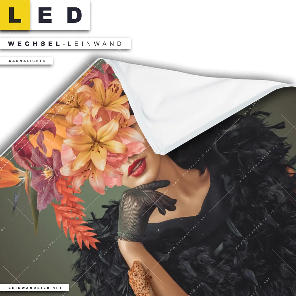 LED Wechsel-Leinwand Canvalight® TEX | Blumenportrait einer Frau | Quadrat