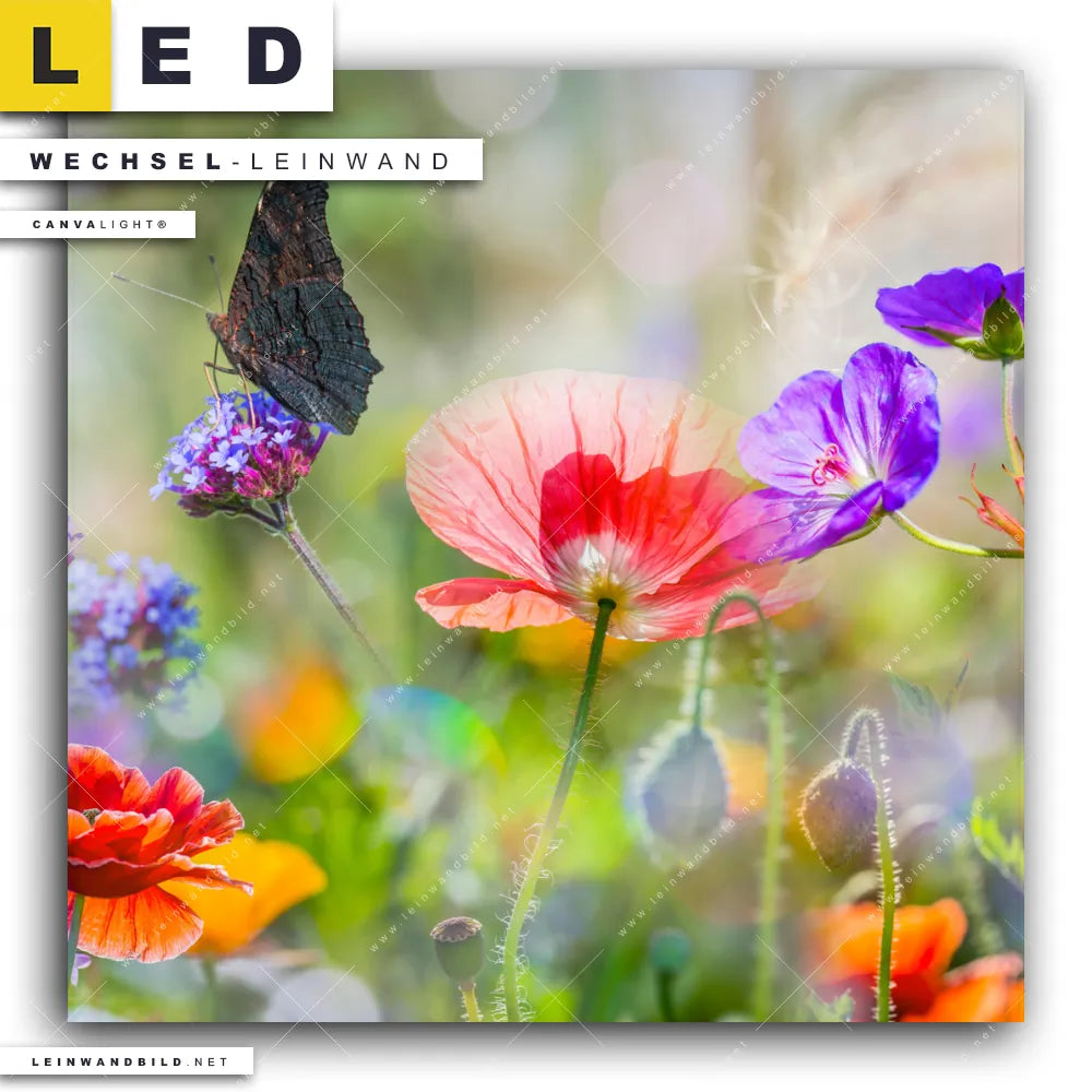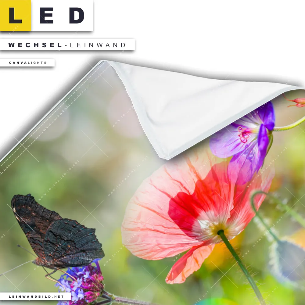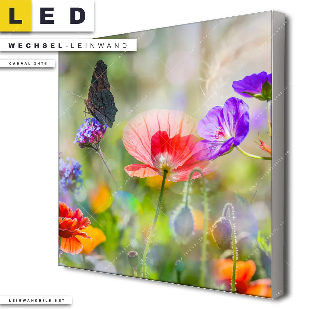 LED Wechsel-Leinwand Canvalight® TEX | Blumenwiese mit Schmetterlingen | Quadrat