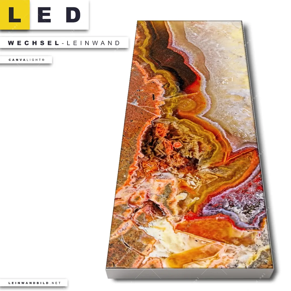 Du bist auf der Suche nach einer Muster - Texturen Wechsel-Leinwand für Dein LED-Leinwandbild im Schmalen Format? Begriffe wie Edelstein, Achat, Kristall, Abstrakt, Querschnitt haben Dich auf der Suche nach Deiner Ersatz-Leinwand für dein LED Wandbild im Panorama-Hochformat mit wechselbarer Leinwand inspiriert? Farben wie Weiss, Braun, Beige, Bunt, Gold, Ocker, Orange, Rot dürfen auf Deinem neuen Wechselmotiv für Dein XXL Leinwand-LED-Bild nicht fehlen und Leinwände im Abstrakt, Modern Art, Natürlich - Realistisch Stil für Leuchtbilder passen perfekt zu Deinem Einrichtungsstil?