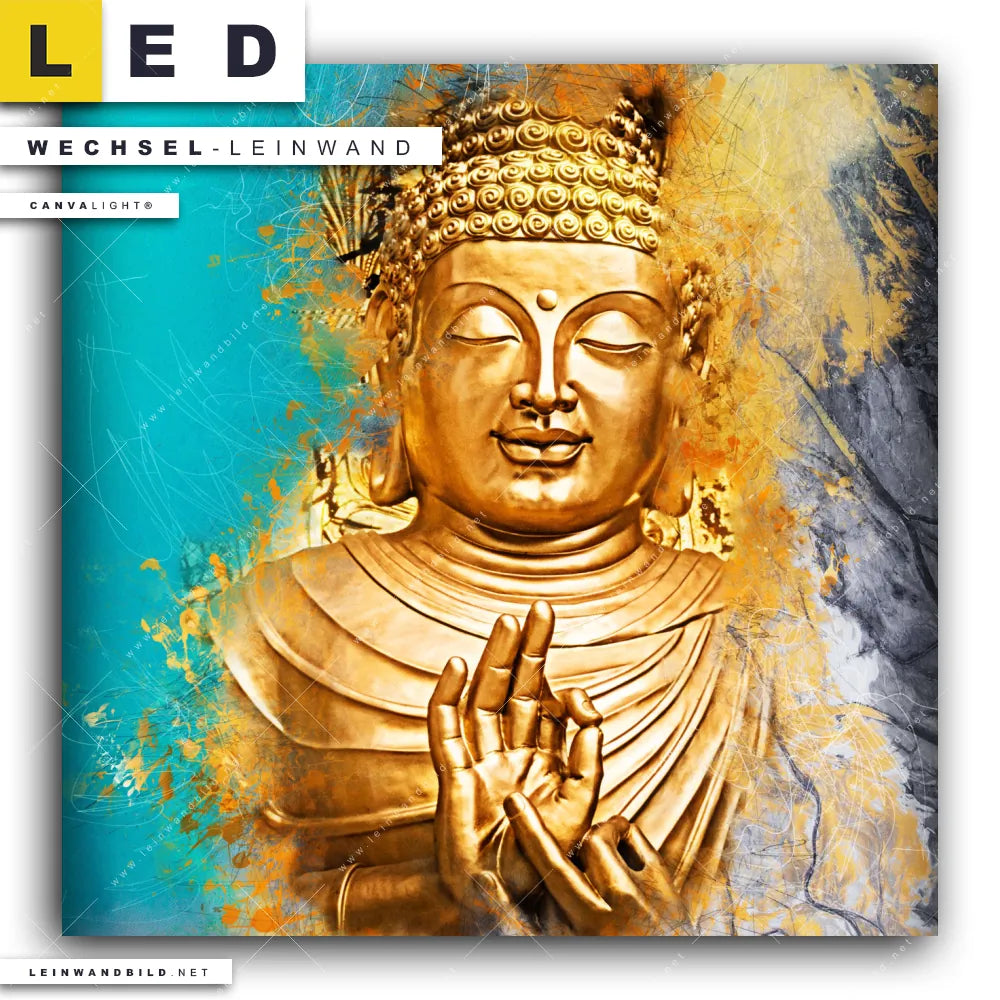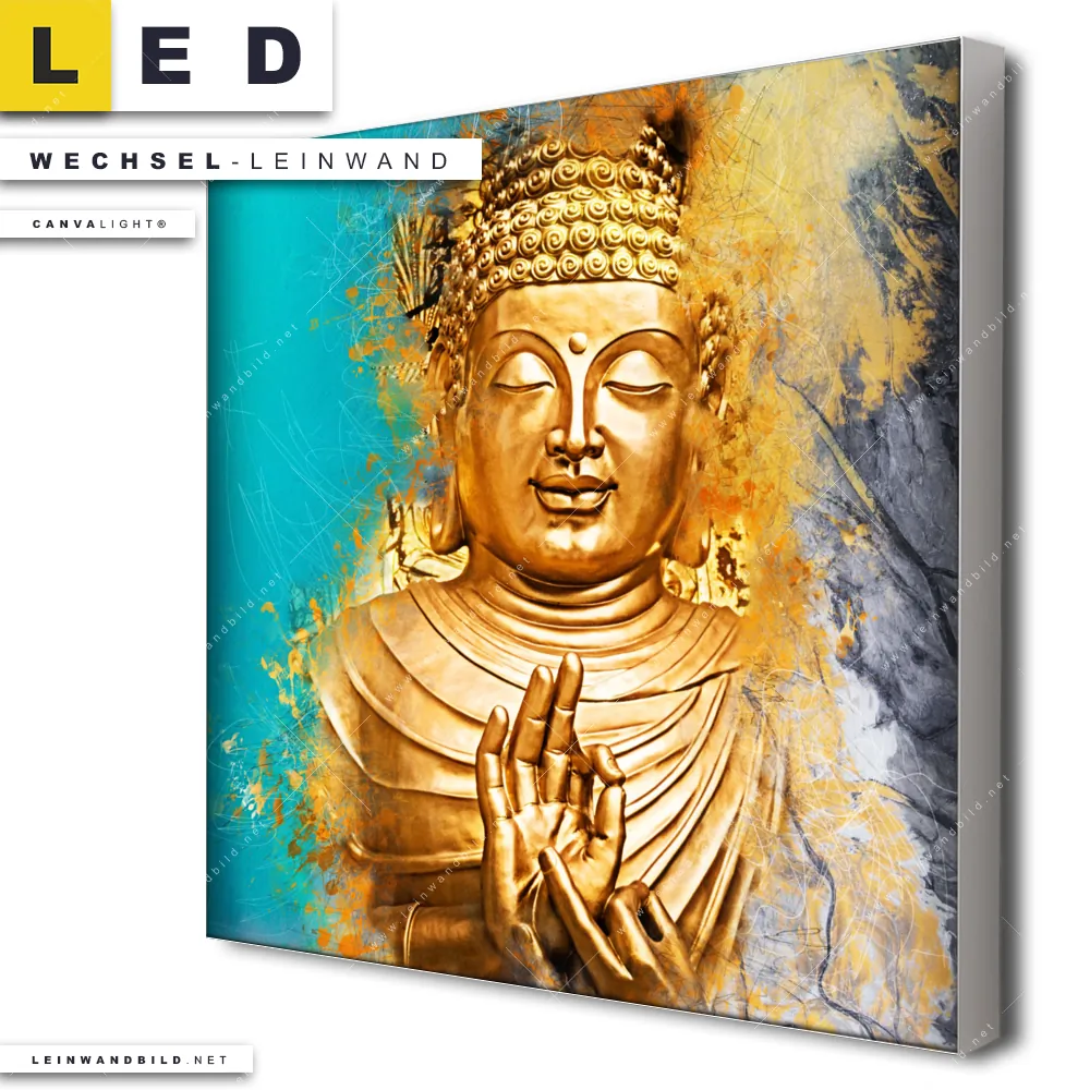 Du bist auf der Suche nach einer Buddha - Feng Shui Wechsel-Leinwand für Dein LED-Leinwandbild im Quadratischen Format? Begriffe wie Buddhismus, Religion, Zen, Meditation, Buddha haben Dich auf der Suche nach Deiner Ersatz-Leinwand für dein LED Wandbild mit wechselbarer Leinwand inspiriert? Farben wie Gold, Türkis dürfen auf Deinem neuen Wechselmotiv für Dein XXL Leinwand-LED-Bild nicht fehlen und Leinwände im Modern Art, Grunge, Mixed Media, Abstrakt Stil für Leuchtbilder passen perfekt zu Deinem Einrichtungsstil?