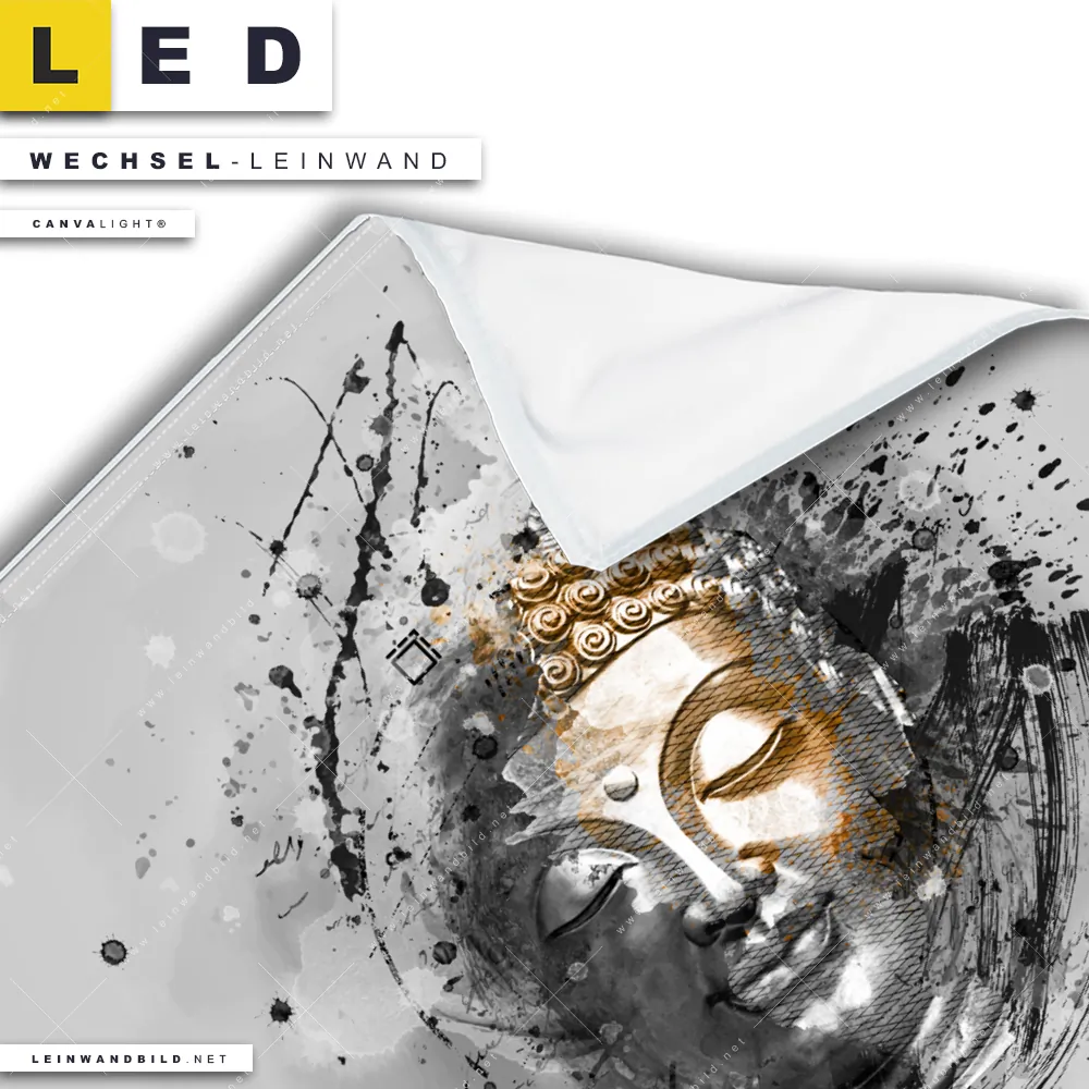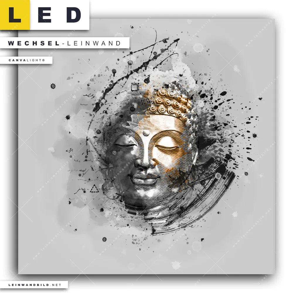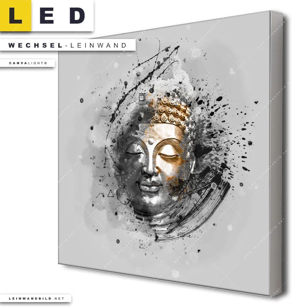 Du bist auf der Suche nach einer Buddha - Feng Shui Wechsel-Leinwand für Dein LED-Leinwandbild im Quadratischen Format? Begriffe wie Feng Shui, Religion, Buddhismus, Buddha, Porträt, Grunge, Streetart, modern haben Dich auf der Suche nach Deiner Ersatz-Leinwand für dein LED Wandbild mit wechselbarer Leinwand inspiriert? Farben wie Silber, Gold dürfen auf Deinem neuen Wechselmotiv für Dein XXL Leinwand-LED-Bild nicht fehlen und Leinwände im Abstrakt, Grunge, Mixed Media, Modern Art Stil für Leuchtbilder passen perfekt zu Deinem Einrichtungsstil?