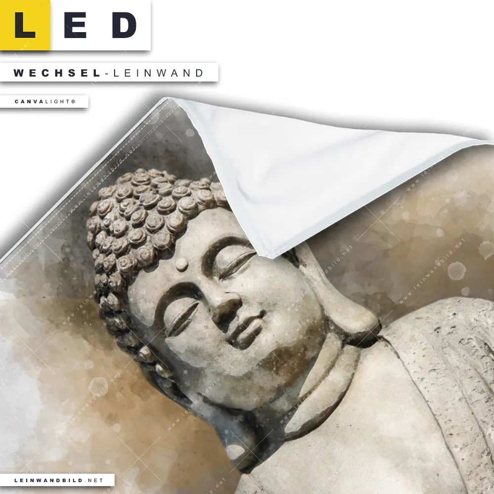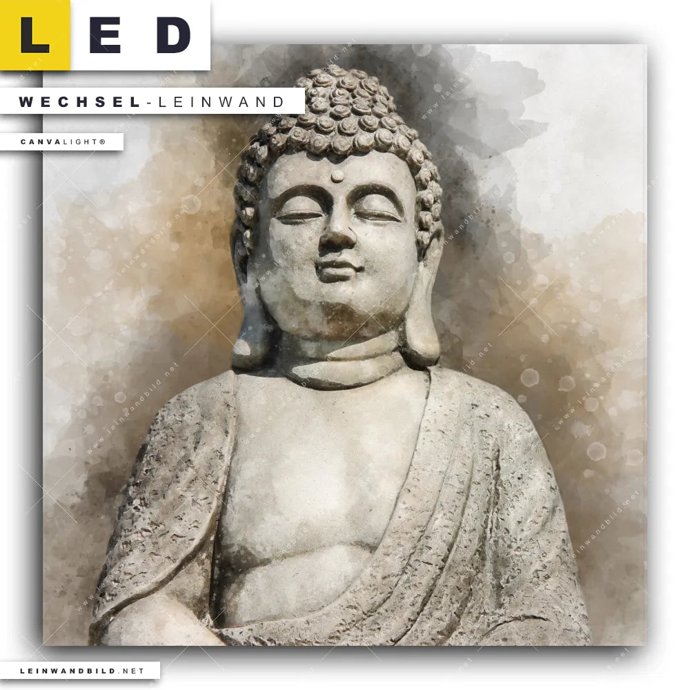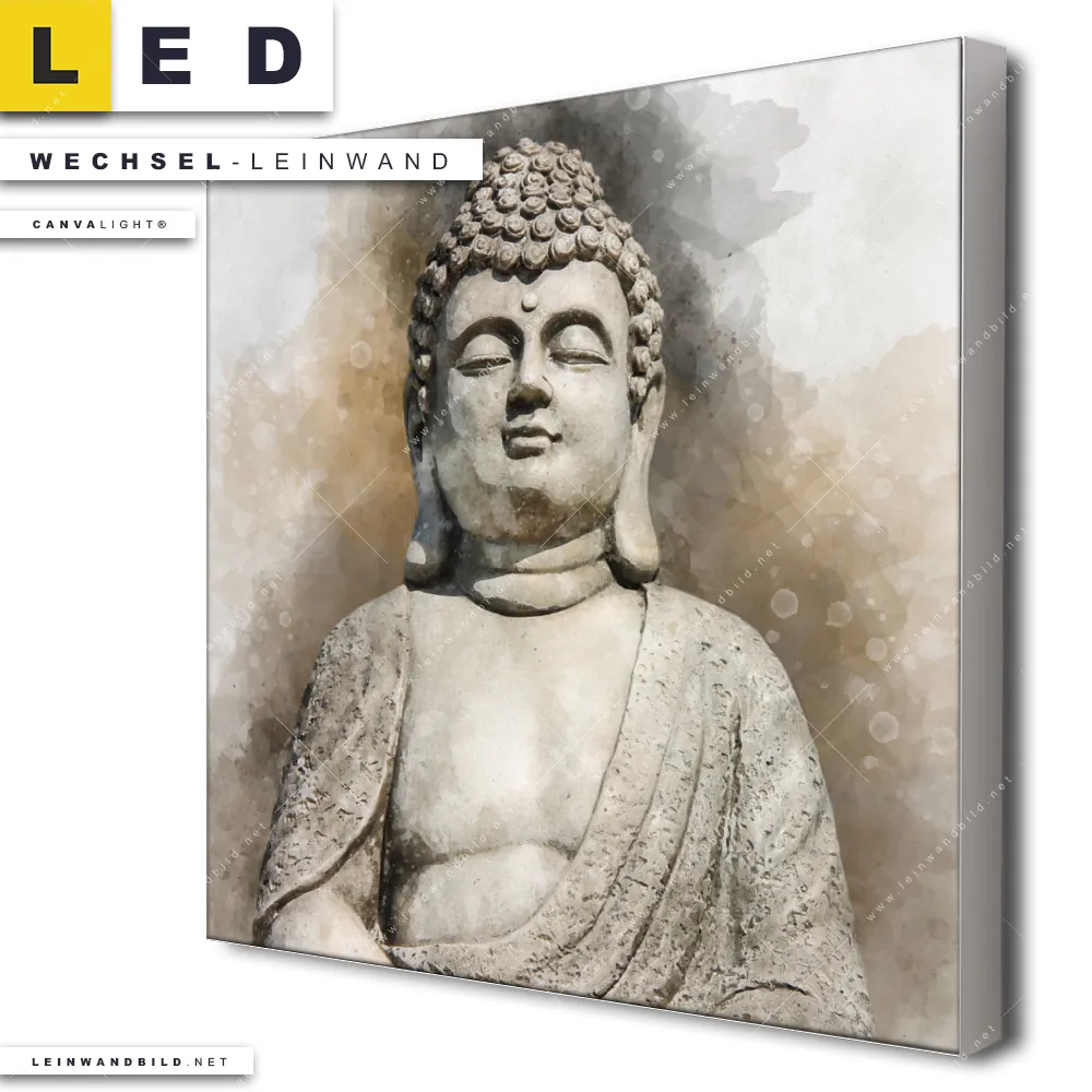 Du bist auf der Suche nach einer Buddha - Feng Shui Wechsel-Leinwand für Dein LED-Leinwandbild im Quadratischen Format? Begriffe wie Buddha, Buddhismus, Religion, Feng Shui, Zen, Meditation, spirituell, heilig, Esoterik, Gott, Gesicht, Statue haben Dich auf der Suche nach Deiner Ersatz-Leinwand für dein LED Wandbild mit wechselbarer Leinwand inspiriert? Farben wie Beige, Weiss dürfen auf Deinem neuen Wechselmotiv für Dein XXL Leinwand-LED-Bild nicht fehlen und Leinwände im Mixed Media, Modern Art Stil für Leuchtbilder passen perfekt zu Deinem Einrichtungsstil?