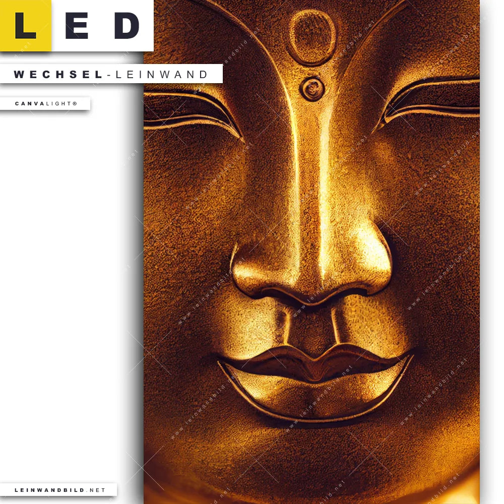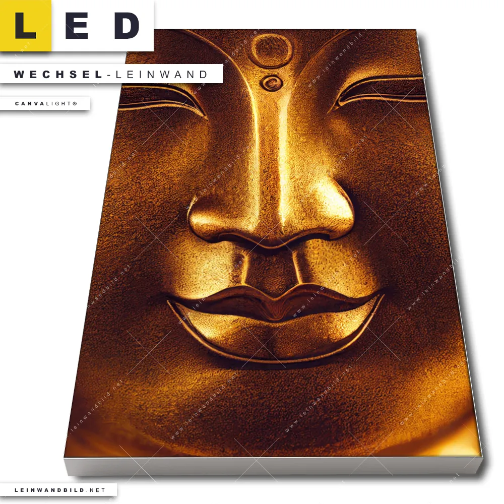 LED Wechsel-Leinwand Canvalight® TEX | Buddha in Harmonie | Hochformat