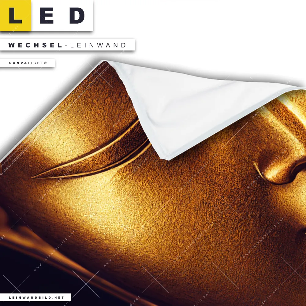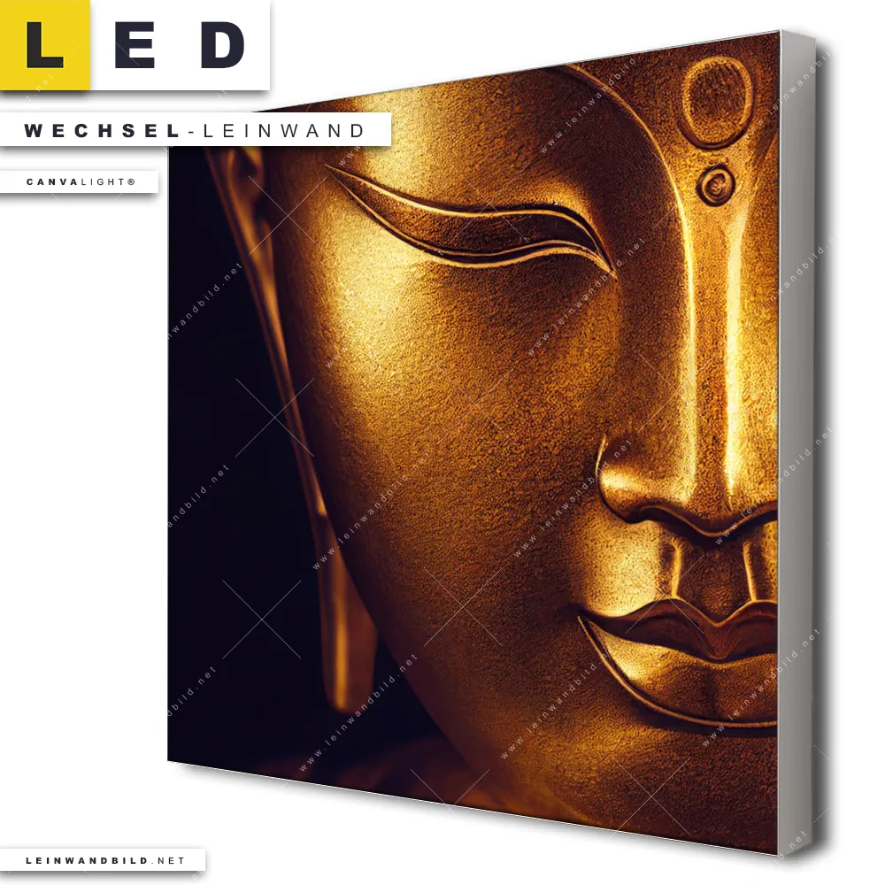 Du bist auf der Suche nach einer Buddha - Feng Shui Wechsel-Leinwand für Dein LED-Leinwandbild im Quadratischen Format? Begriffe wie Buddha, Buddhismus, Religion, Feng Shui, Zen, Meditation, spirituell, heilig, Esoterik, Gott, Gesicht haben Dich auf der Suche nach Deiner Ersatz-Leinwand für dein LED Wandbild mit wechselbarer Leinwand inspiriert? Farben wie Braun, Beige, Gold dürfen auf Deinem neuen Wechselmotiv für Dein XXL Leinwand-LED-Bild nicht fehlen und Leinwände im Mixed Media, Modern Art Stil für Leuchtbilder passen perfekt zu Deinem Einrichtungsstil?