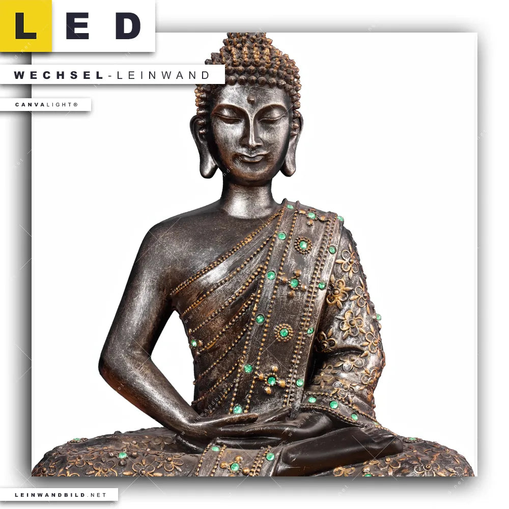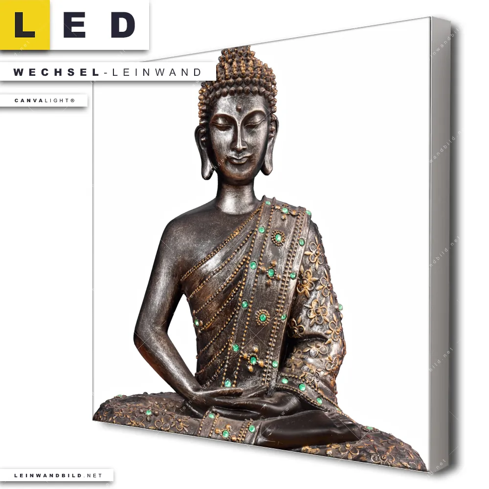 Du konfigurierst Deine individuelle LED Wechsel-Leinwand Canvalight® TEX | Buddha in Lotus Pose No. 2 | Quadrat und wir produzieren sie NEU für Dich. Unsere Buddha - Feng Shui Austausch-Fotoleinwände für Canvalight® LED Bilder sind KEINE Lagerware. Du bist Dir unsicher, welches Motiv oder Format das richtige für dein individuelles LED Wechselmotiv auf Leinwand ist, dann helfen wir dir gerne weiter und beraten dich!