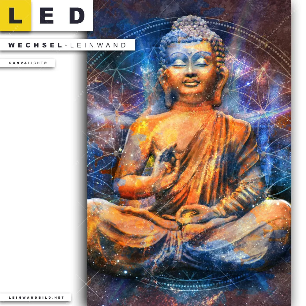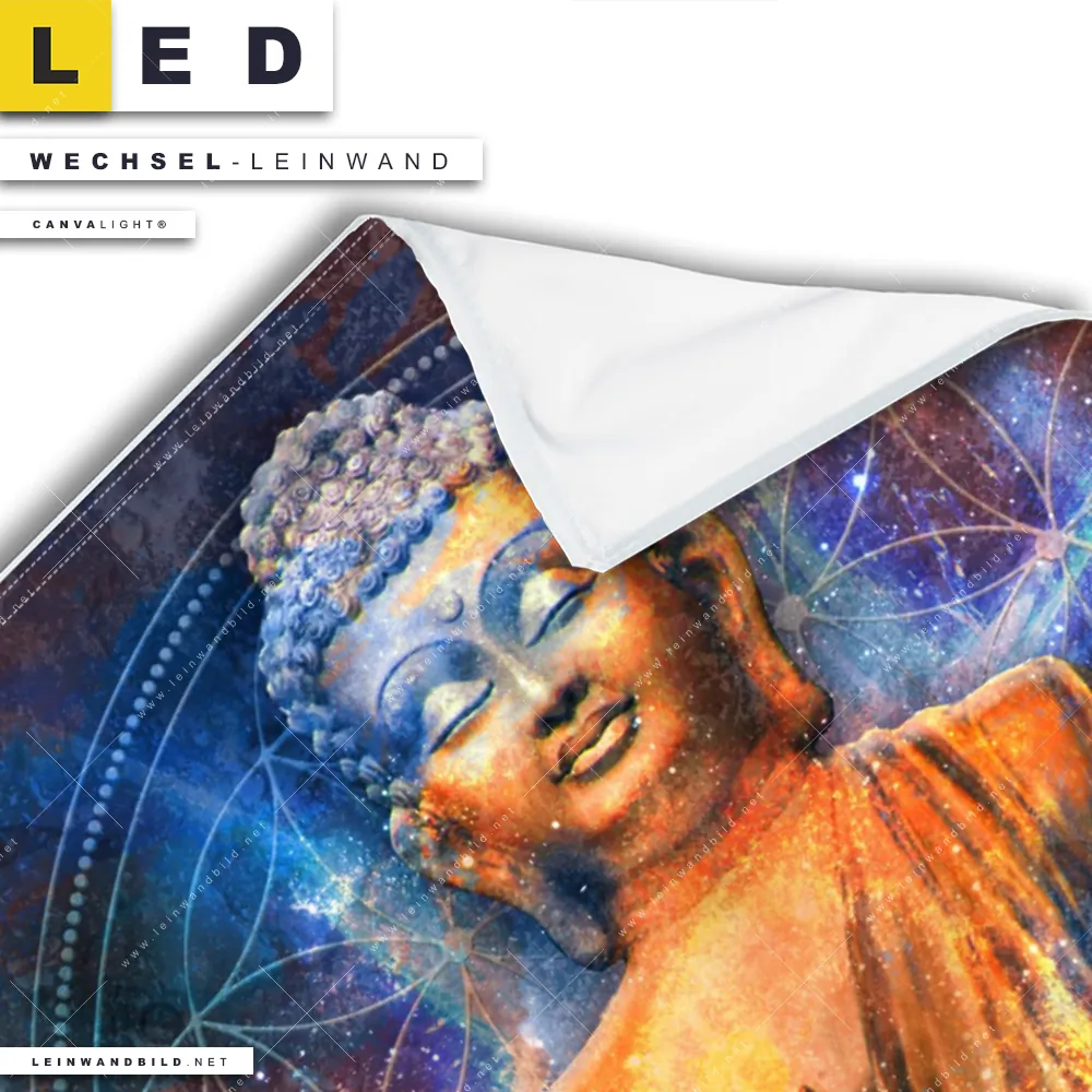LED Wechsel-Leinwand Canvalight® TEX | Buddha in Meditation | Hochformat