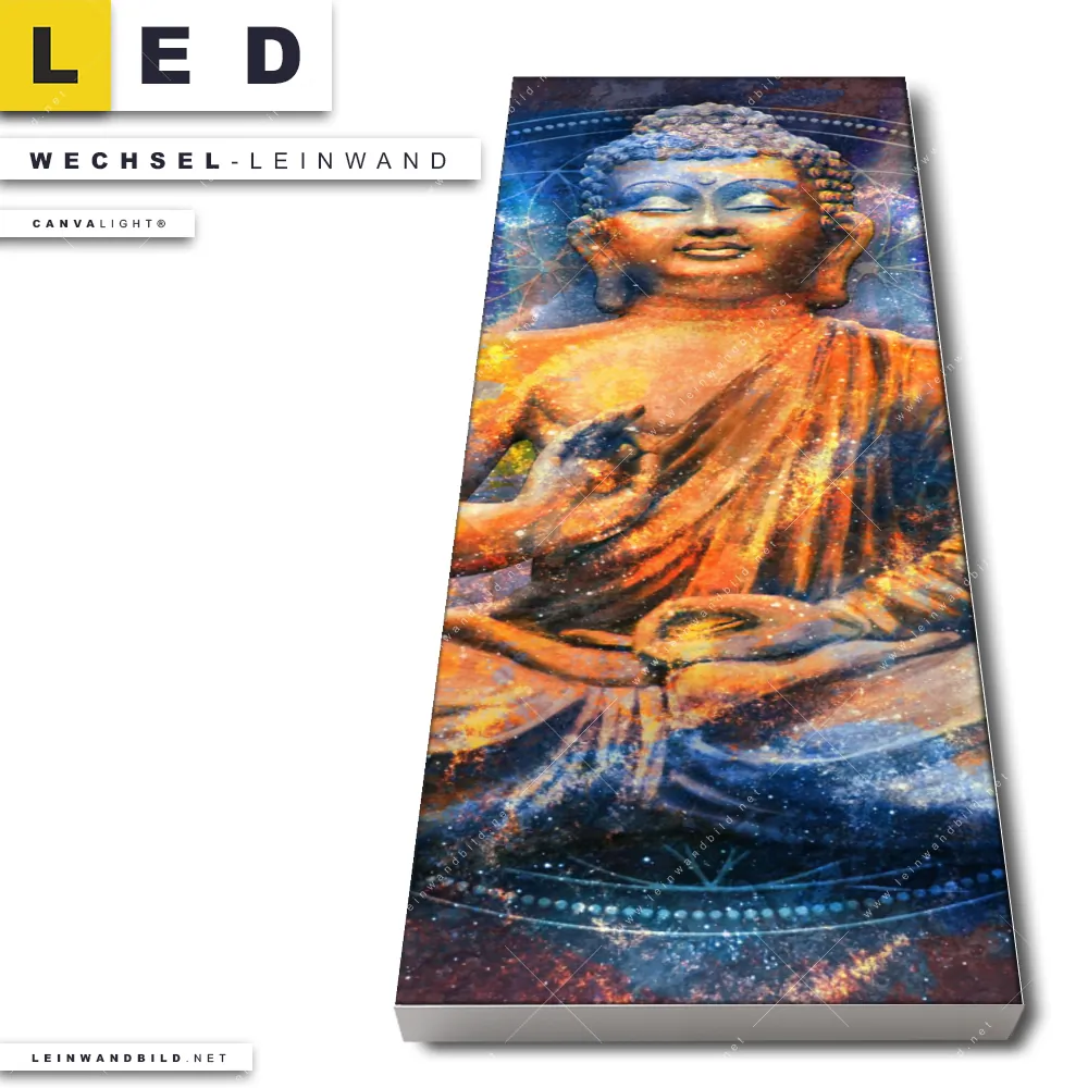 Du konfigurierst Deine individuelle LED Wechsel-Leinwand Canvalight® TEX | Buddha in Meditation | Schmal und wir produzieren sie NEU für Dich. Unsere Buddha - Feng Shui Austausch-Fotoleinwände für Canvalight® LED Bilder sind KEINE Lagerware. Du bist Dir unsicher, welches Motiv oder Format das richtige für dein individuelles LED Wechselmotiv auf Leinwand ist, dann helfen wir dir gerne weiter und beraten dich!