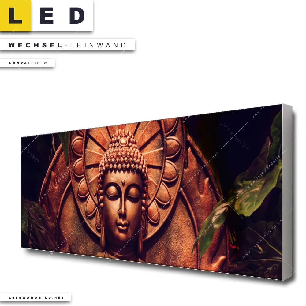 Du bist auf der Suche nach einer Buddha - Feng Shui Wechsel-Leinwand für Dein LED-Leinwandbild im Panorama-Format? Begriffe wie Buddha, Buddhismus, Religion, Feng Shui, Zen, Meditation, spirituell, heilig, Esoterik, Gott, Gesicht, Blüte, Lotus, Lotusblüte haben Dich auf der Suche nach Deiner Ersatz-Leinwand für dein extra breites LED Wandbild mit wechselbarer Leinwand inspiriert? Farben wie Braun, Blau dürfen auf Deinem neuen Wechselmotiv für Dein XXL Leinwand-LED-Bild nicht fehlen und Leinwände im Modern Art, Natürlich - Realistisch Stil für Leuchtbilder passen perfekt zu Deinem Einrichtungsstil?