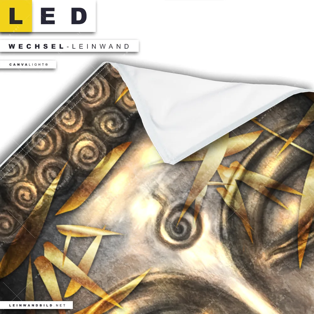 LED Wechsel-Leinwand Canvalight® TEX | Buddha Silber & Gold | Hochformat