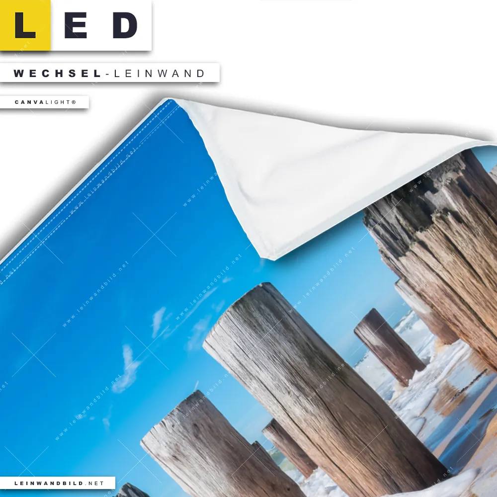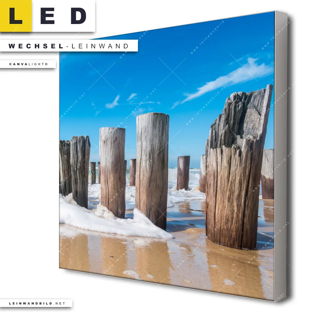 Du konfigurierst Deine individuelle LED Wechsel-Leinwand Canvalight® TEX | Buhnen in Wellen am Strand | Quadrat und wir produzieren sie NEU für Dich. Unsere Strand - Meer, Landschaften Austausch-Fotoleinwände für Canvalight® LED Bilder sind KEINE Lagerware. Du bist Dir unsicher, welches Motiv oder Format das richtige für dein individuelles LED Wechselmotiv auf Leinwand ist, dann helfen wir dir gerne weiter und beraten dich!