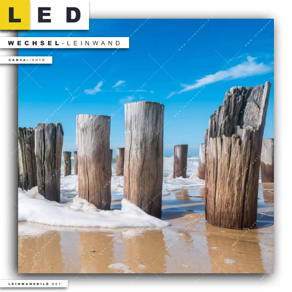 Du bist auf der Suche nach einer Strand - Meer, Landschaften Wechsel-Leinwand für Dein LED-Leinwandbild im Quadratischen Format? Begriffe wie Sand, Deutschland, Wellenbrecher, Buhnen, Sommer, Ostsee - Nordsee, Urlaub - Reisen haben Dich auf der Suche nach Deiner Ersatz-Leinwand für dein LED Wandbild mit wechselbarer Leinwand inspiriert? Farben wie Blau, Beige, Braun dürfen auf Deinem neuen Wechselmotiv für Dein XXL Leinwand-LED-Bild nicht fehlen und Leinwände im Natürlich - Realistisch Stil für Leuchtbilder passen perfekt zu Deinem Einrichtungsstil?