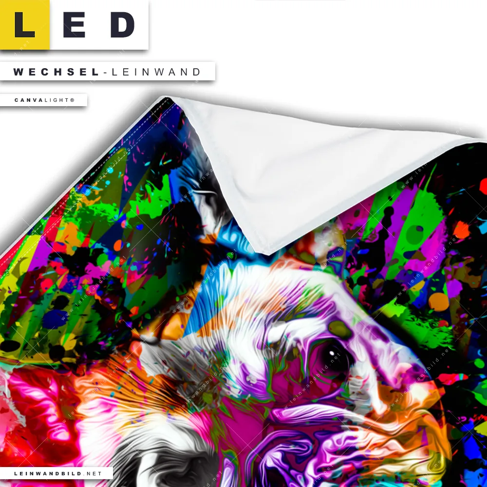 LED Wechsel-Leinwand Canvalight® TEX | Bunte Bulldogge Schwarz | Querformat