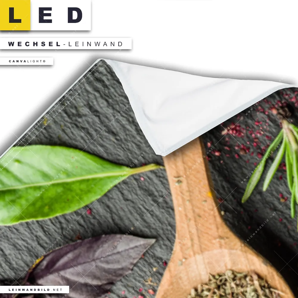 Du bist auf der Suche nach einer Essen - Trinken Wechsel-Leinwand für Dein LED-Leinwandbild im Schmalen Format? Begriffe wie Gewürze, Kräuter, Löffel, kochen, Pfeffer, Curry, Holzlöffel, Küche, Lebensmittel, gesund, Holz haben Dich auf der Suche nach Deiner Ersatz-Leinwand für dein LED Wandbild im Panorama-Hochformat mit wechselbarer Leinwand inspiriert? Farben wie Braun, Grün, Orange, Rot dürfen auf Deinem neuen Wechselmotiv für Dein XXL Leinwand-LED-Bild nicht fehlen und Leinwände im Modern Art, Natürlich - Realistisch Stil für Leuchtbilder passen perfekt zu Deinem Einrichtungsstil?