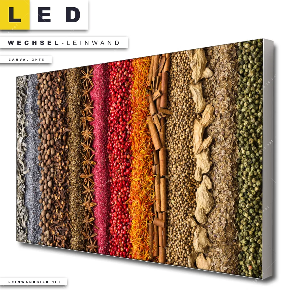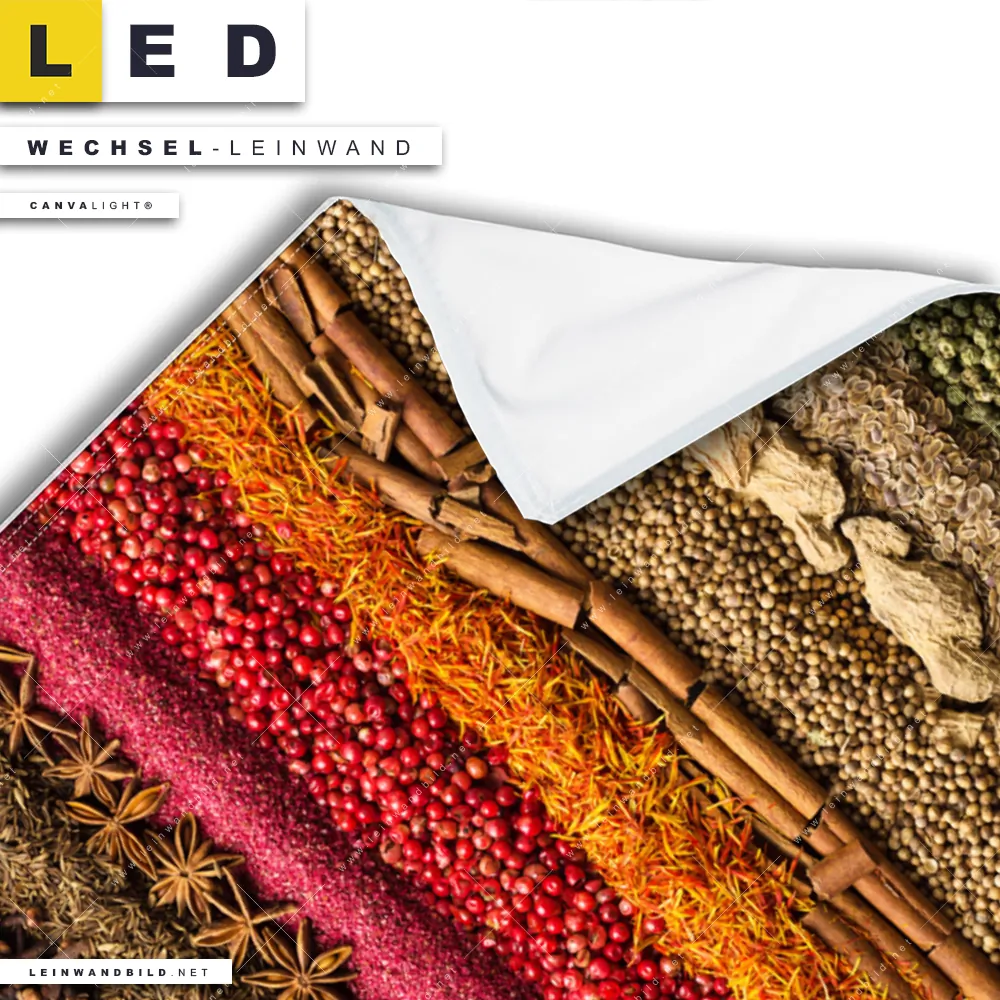 LED Wechsel-Leinwand Canvalight® TEX | Bunte Gewürze | Querformat