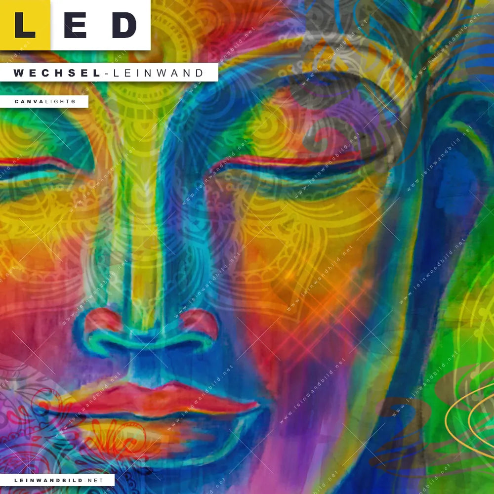 Du konfigurierst Deine individuelle LED Wechsel-Leinwand Canvalight® TEX | Bunter Buddha No.2 | Panorama und wir produzieren sie NEU für Dich. Unsere Buddha - Feng Shui Austausch-Fotoleinwände für Canvalight® LED Bilder sind KEINE Lagerware. Du bist Dir unsicher, welches Motiv oder Format das richtige für dein individuelles LED Wechselmotiv auf Leinwand ist, dann helfen wir dir gerne weiter und beraten dich!