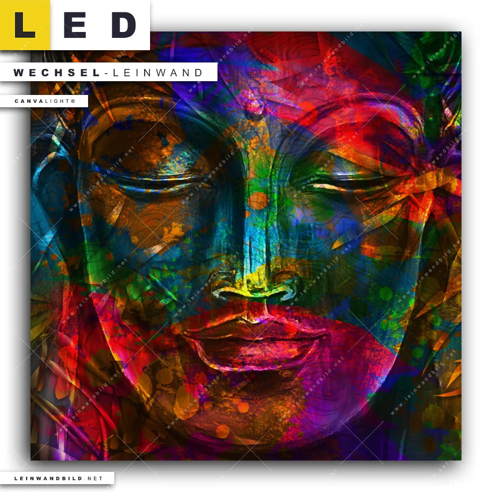 Du konfigurierst Deine individuelle LED Wechsel-Leinwand Canvalight® TEX | Bunter Buddha | Quadrat und wir produzieren sie NEU für Dich. Unsere Buddha - Feng Shui Austausch-Fotoleinwände für Canvalight® LED Bilder sind KEINE Lagerware. Du bist Dir unsicher, welches Motiv oder Format das richtige für dein individuelles LED Wechselmotiv auf Leinwand ist, dann helfen wir dir gerne weiter und beraten dich!