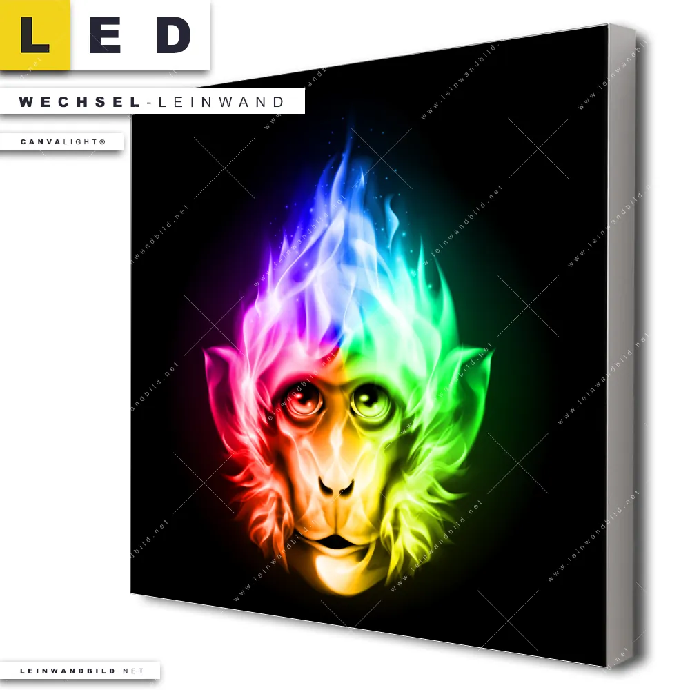 Du bist auf der Suche nach einer Tierwelt Wechsel-Leinwand für Dein LED-Leinwandbild im Quadratischen Format? Begriffe wie Tier, Affe, Monkey, Feuer, Fire, Flammen haben Dich auf der Suche nach Deiner Ersatz-Leinwand für dein LED Wandbild mit wechselbarer Leinwand inspiriert? Farben wie Schwarz, Bunt dürfen auf Deinem neuen Wechselmotiv für Dein XXL Leinwand-LED-Bild nicht fehlen und Leinwände im Pop Art, Modern Art, Abstrakt Stil für Leuchtbilder passen perfekt zu Deinem Einrichtungsstil?
