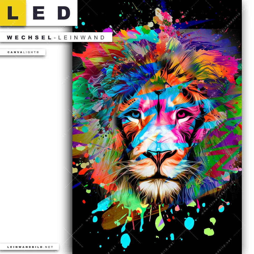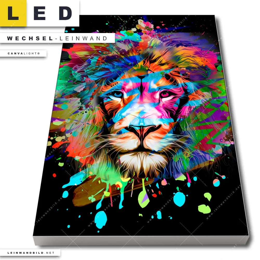 Du bist auf der Suche nach einer Tierwelt Wechsel-Leinwand für Dein LED-Leinwandbild im Hochformat? Begriffe wie Raubkatze, Löwe, Afrika, Dschungel, Lion, Splash, Farbspritzer, Farbexplosion, Porträt, Farbe haben Dich auf der Suche nach Deiner Ersatz-Leinwand für dein LED Wandbild mit wechselbarer Leinwand inspiriert? Farben wie Bunt dürfen auf Deinem neuen Wechselmotiv für Dein XXL Leinwand-LED-Bild nicht fehlen und Leinwände im Abstrakt, Modern Art, Pop Art, Street Art Stil für Leuchtbilder passen perfekt zu Deinem Einrichtungsstil?