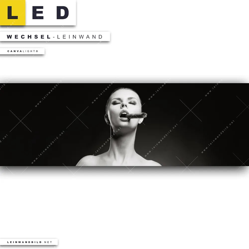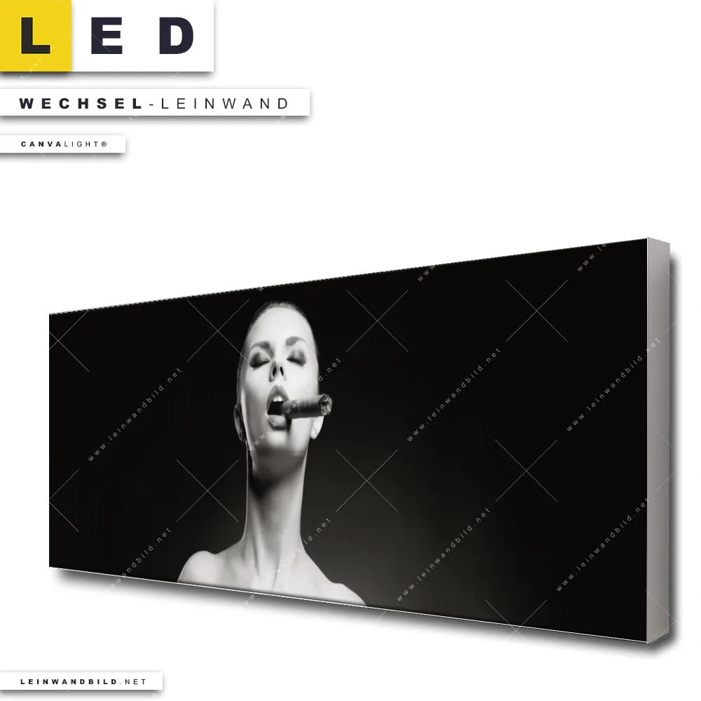 LED Wechsel-Leinwand Canvalight® TEX | Dame mit Zigarre | Panorama