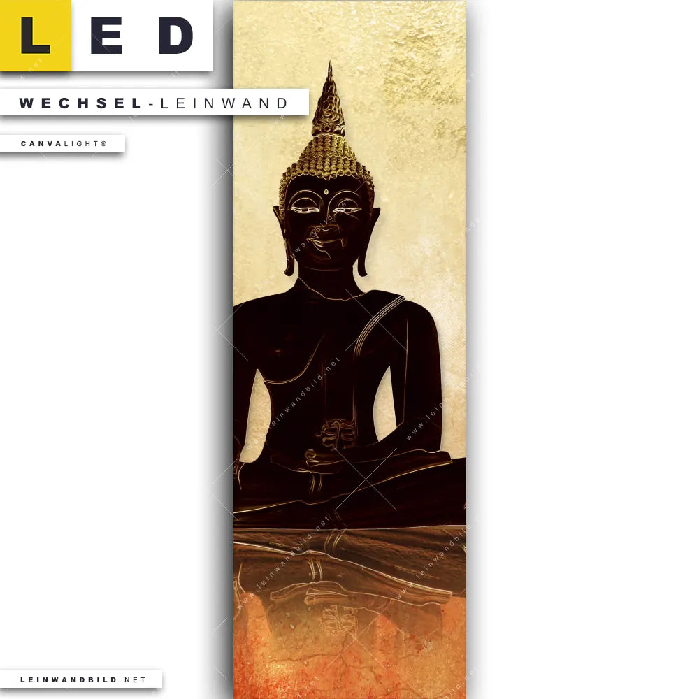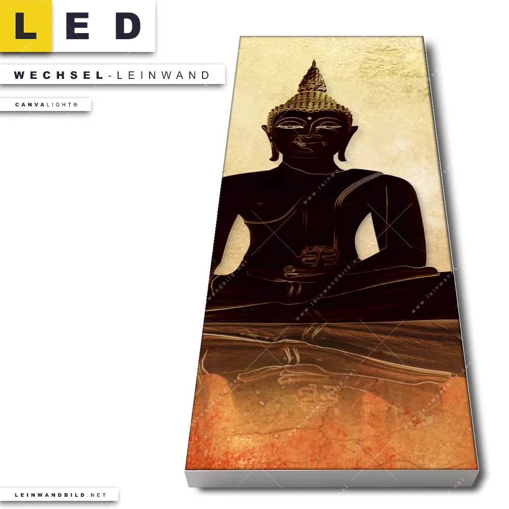 Du bist auf der Suche nach einer Buddha - Feng Shui Wechsel-Leinwand für Dein LED-Leinwandbild im Schmalen Format? Begriffe wie Buddha, Buddhismus, Religion, Feng Shui, Zen, Meditation haben Dich auf der Suche nach Deiner Ersatz-Leinwand für dein LED Wandbild im Panorama-Hochformat mit wechselbarer Leinwand inspiriert? Farben wie Schwarz, Gold, Orange, Gelb dürfen auf Deinem neuen Wechselmotiv für Dein XXL Leinwand-LED-Bild nicht fehlen und Leinwände im Modern Art, Retro - Vintage Stil für Leuchtbilder passen perfekt zu Deinem Einrichtungsstil?