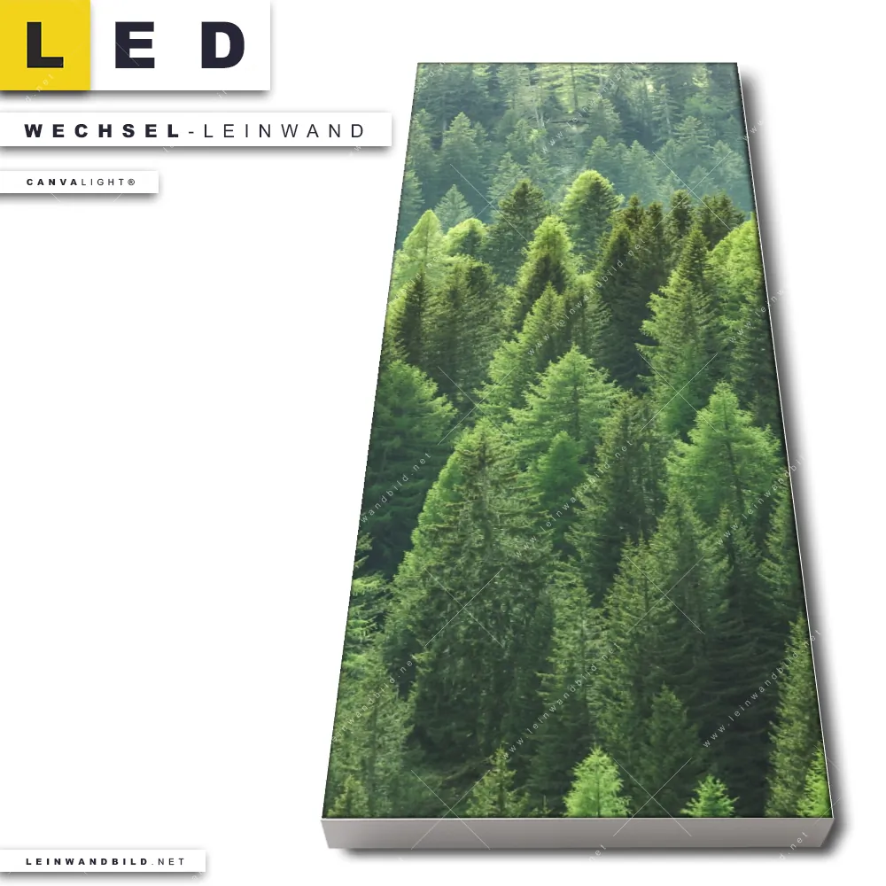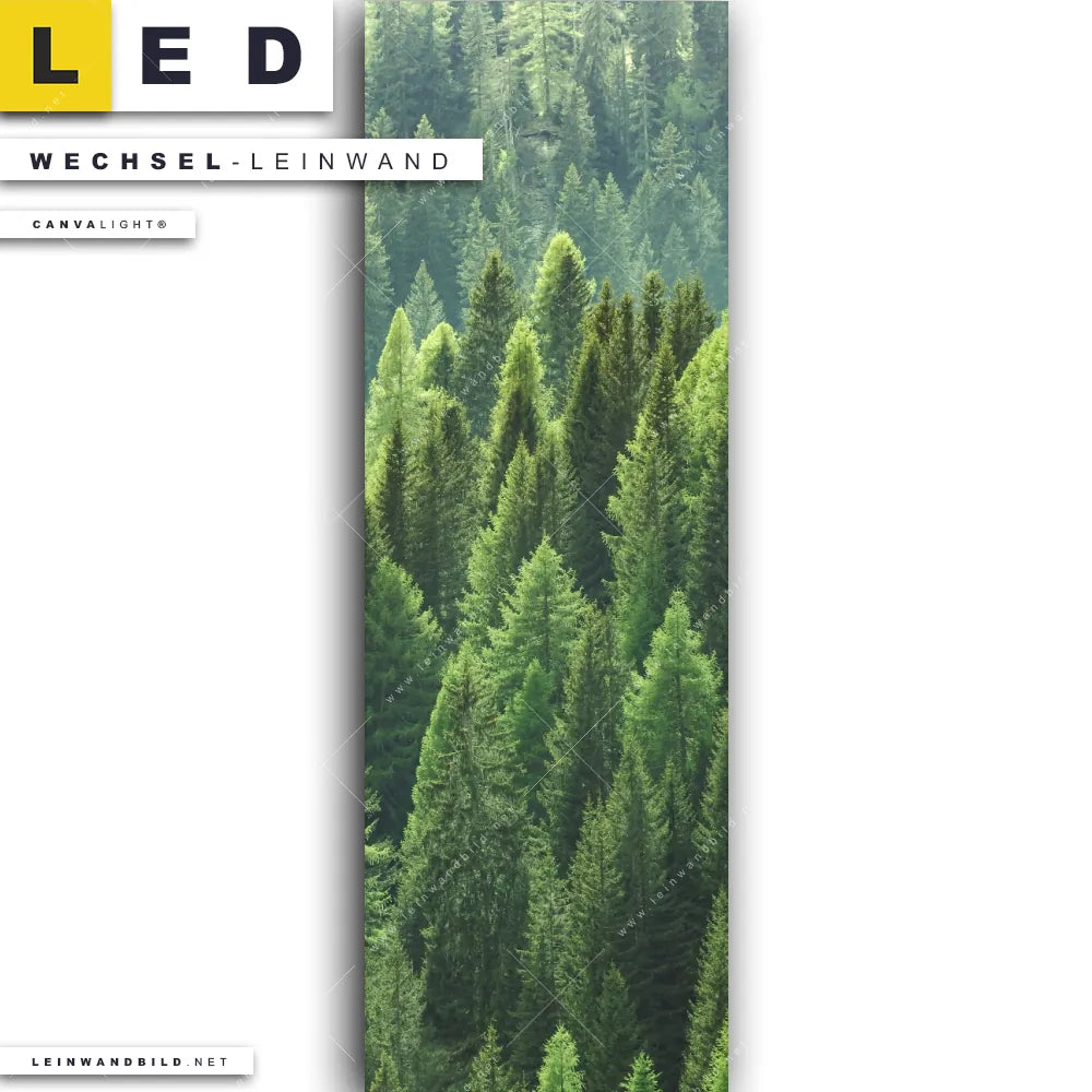 Du bist auf der Suche nach einer Landschaften, Wald - Bäume Wechsel-Leinwand für Dein LED-Leinwandbild im Schmalen Format? Begriffe wie Wald, Landschaft, Baum, Bäume, Natur, Nadelwald haben Dich auf der Suche nach Deiner Ersatz-Leinwand für dein LED Wandbild im Panorama-Hochformat mit wechselbarer Leinwand inspiriert? Farben wie Grün dürfen auf Deinem neuen Wechselmotiv für Dein XXL Leinwand-LED-Bild nicht fehlen und Leinwände im Natürlich - Realistisch Stil für Leuchtbilder passen perfekt zu Deinem Einrichtungsstil?