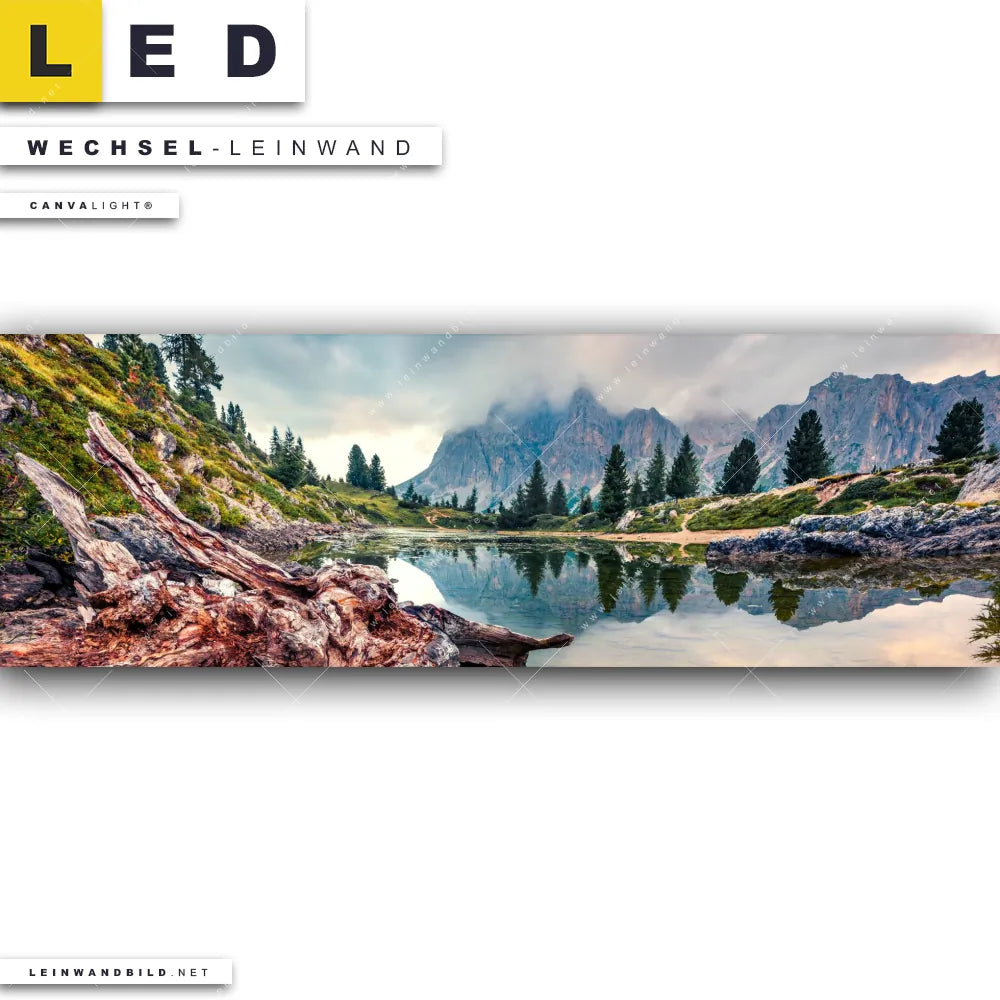 LED Wechsel-Leinwand Canvalight® TEX | Dramatischer Morgenblick am See | Panorama