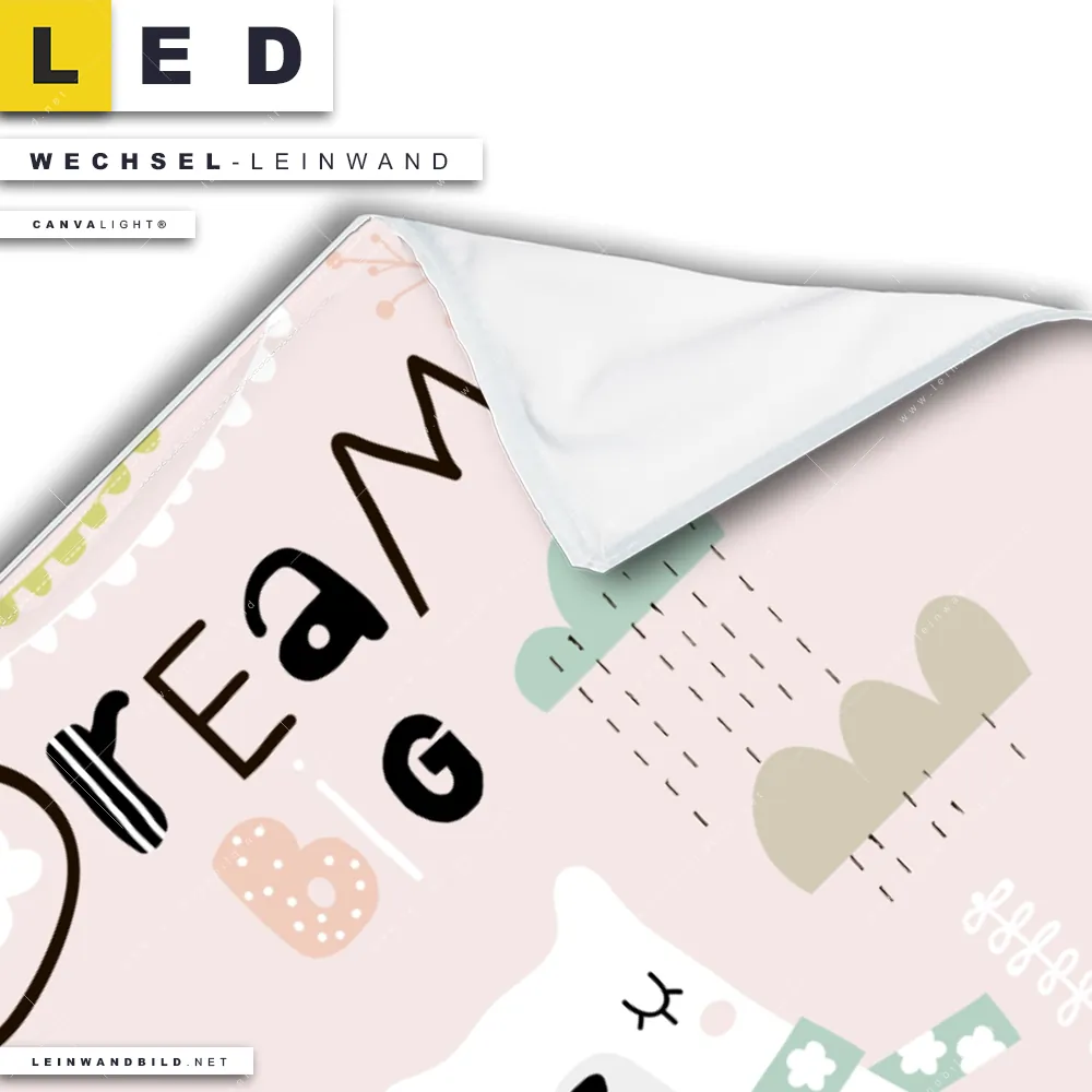 Du bist auf der Suche nach einer Tierwelt Wechsel-Leinwand für Dein LED-Leinwandbild im Querformat? Begriffe wie Kinder, Tiere, Kunst, Freunde, Nachtlicht, Eisbär, träumen haben Dich auf der Suche nach Deiner Ersatz-Leinwand für dein breites LED Wandbild mit wechselbarer Leinwand inspiriert? Farben wie Rosa, Grün, Blau dürfen auf Deinem neuen Wechselmotiv für Dein XXL Leinwand-LED-Bild nicht fehlen und Leinwände im Modern Art Stil für Leuchtbilder passen perfekt zu Deinem Einrichtungsstil?