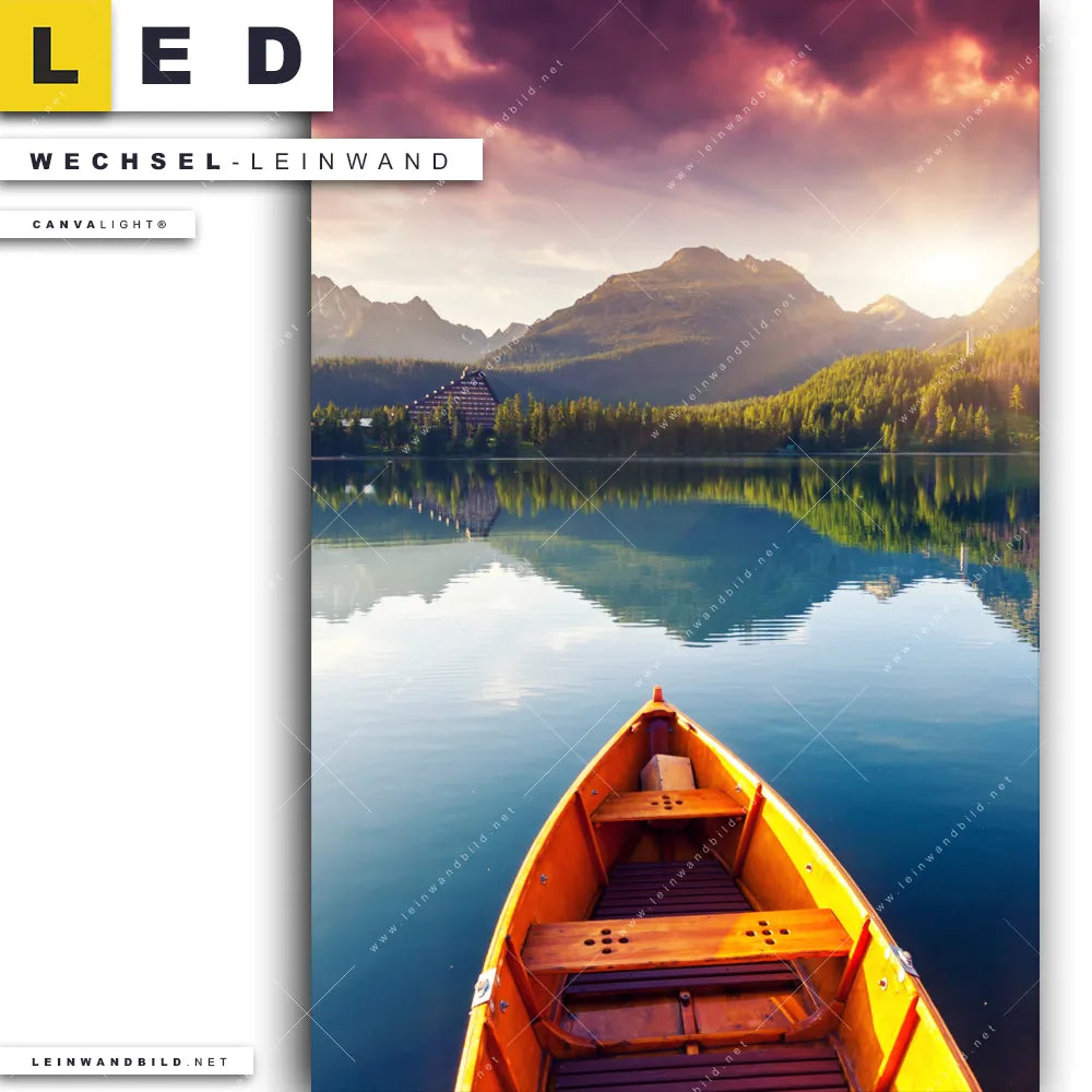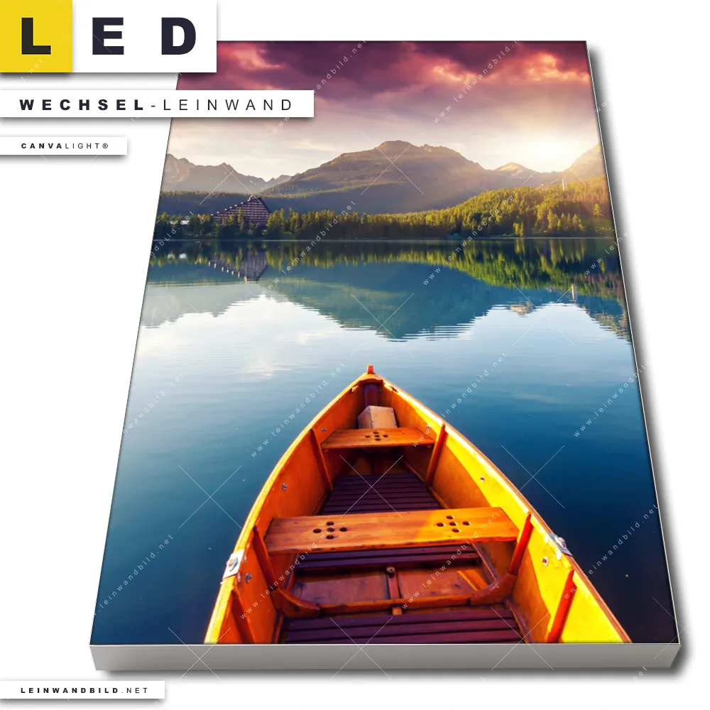 Du bist auf der Suche nach einer Landschaften Wechsel-Leinwand für Dein LED-Leinwandbild im Hochformat? Begriffe wie Urlaub, Reisen, Wasser, Berge, Bergsee, See, Wasserspiegelung, Boote, Gebirge, Sonnenuntergang, Sonnenaufgang, Natur haben Dich auf der Suche nach Deiner Ersatz-Leinwand für dein LED Wandbild mit wechselbarer Leinwand inspiriert? Farben wie Blau, Lila dürfen auf Deinem neuen Wechselmotiv für Dein XXL Leinwand-LED-Bild nicht fehlen und Leinwände im Natürlich - Realistisch Stil für Leuchtbilder passen perfekt zu Deinem Einrichtungsstil?