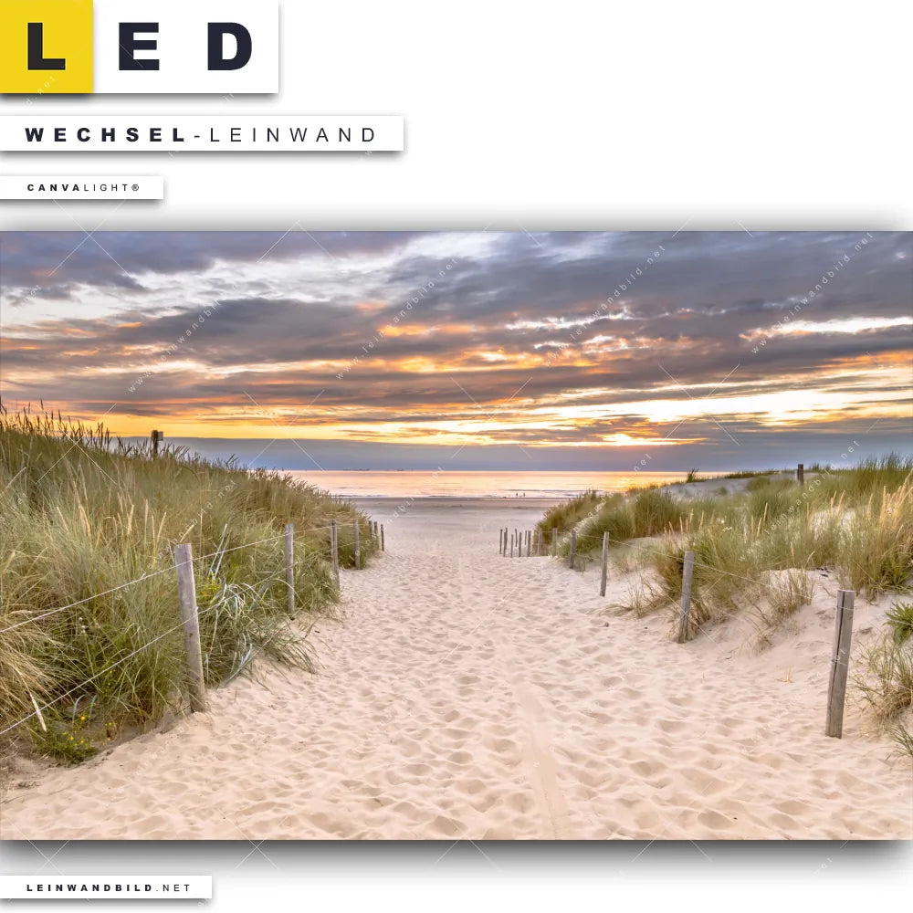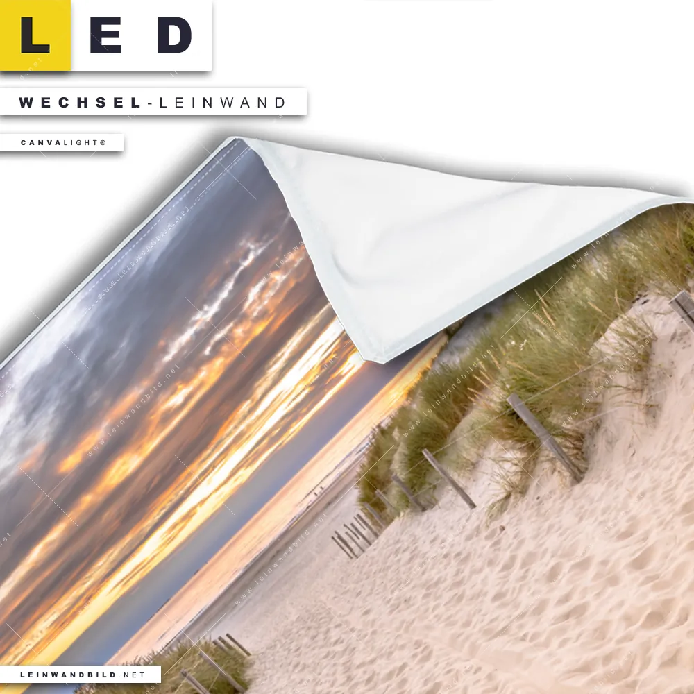 Du bist auf der Suche nach einer Strand - Meer, Landschaften Wechsel-Leinwand für Dein LED-Leinwandbild im Querformat? Begriffe wie Sommer, Deutschland, Dünen, Gräser, Sonnenuntergang - Sonnenaufgang, Ostsee - Nordsee, Urlaub - Reisen, Strandweg haben Dich auf der Suche nach Deiner Ersatz-Leinwand für dein breites LED Wandbild mit wechselbarer Leinwand inspiriert? Farben wie Grün, Beige, Hellblau, Orange dürfen auf Deinem neuen Wechselmotiv für Dein XXL Leinwand-LED-Bild nicht fehlen und Leinwände im Natürlich - Realistisch Stil für Leuchtbilder passen perfekt zu Deinem Einrichtungsstil?