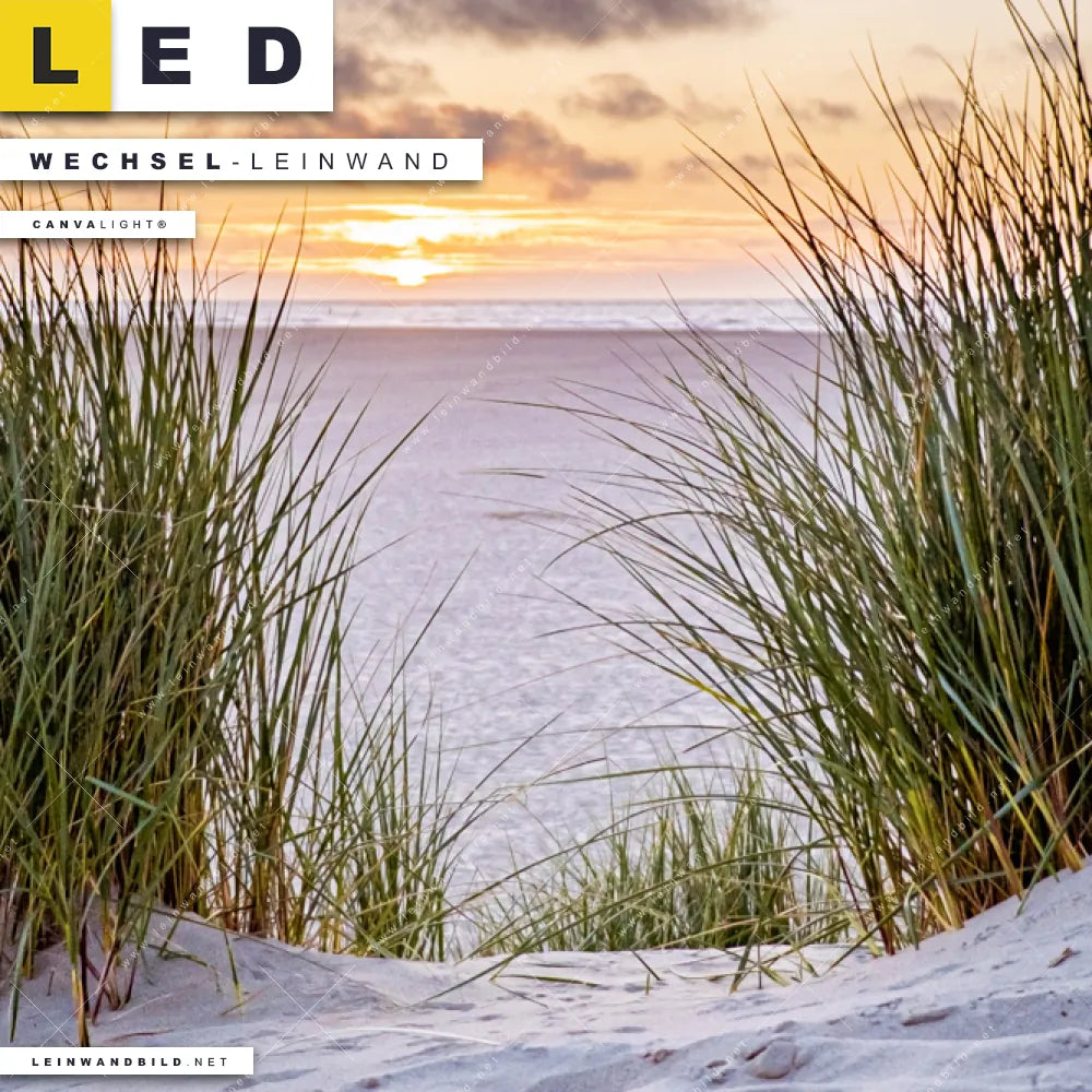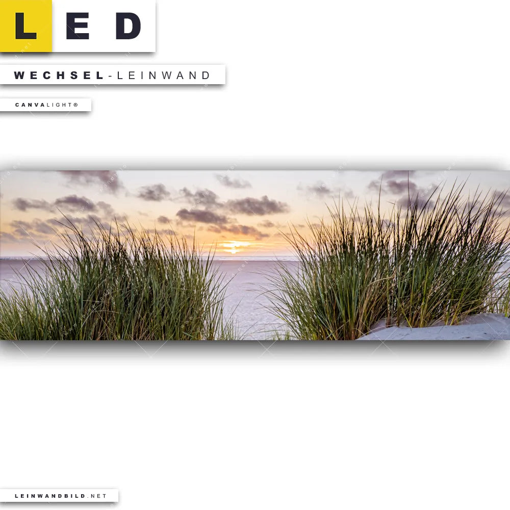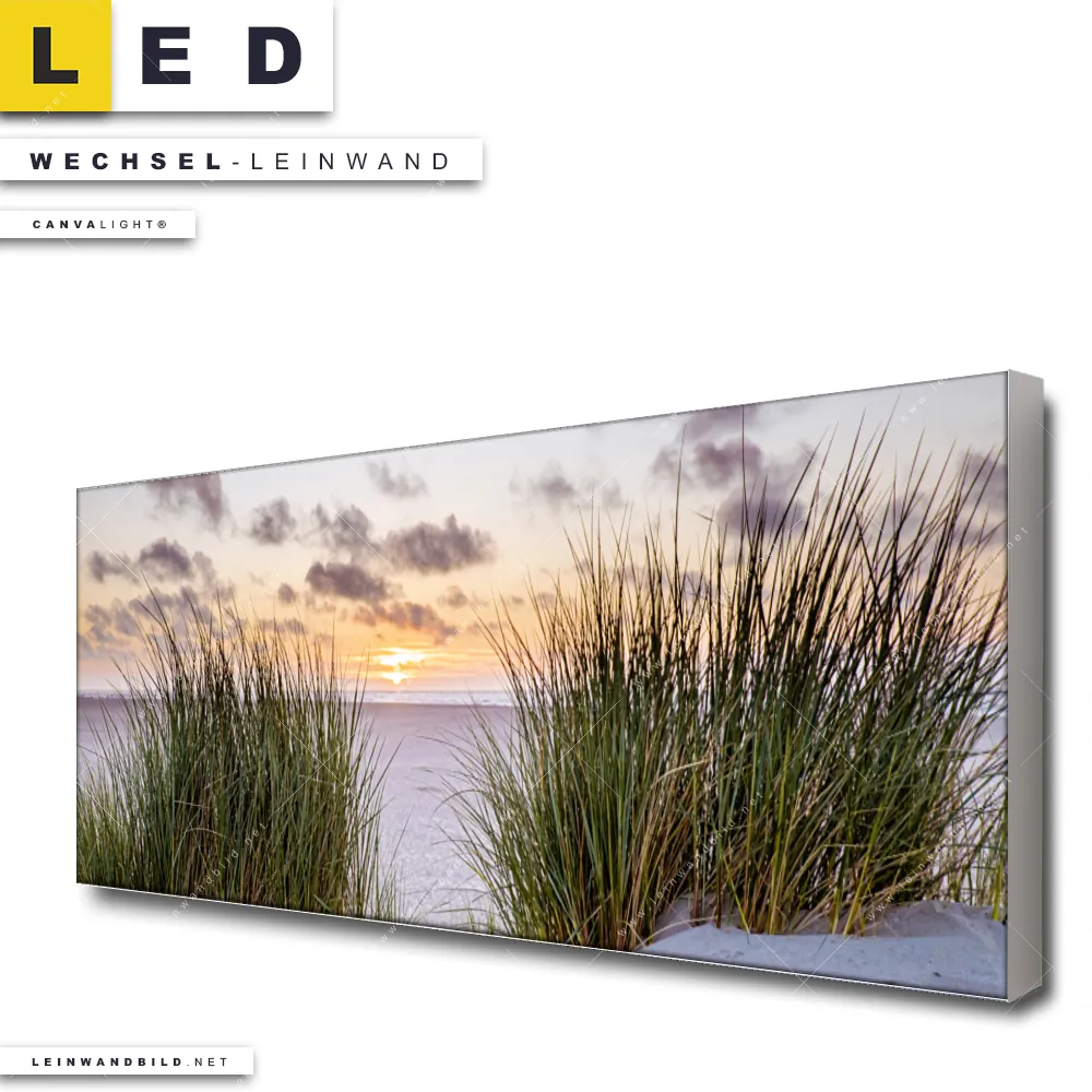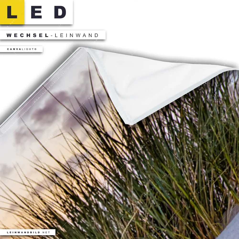 LED Wechsel-Leinwand Canvalight® TEX | Dünen und Abendsonne | Panorama