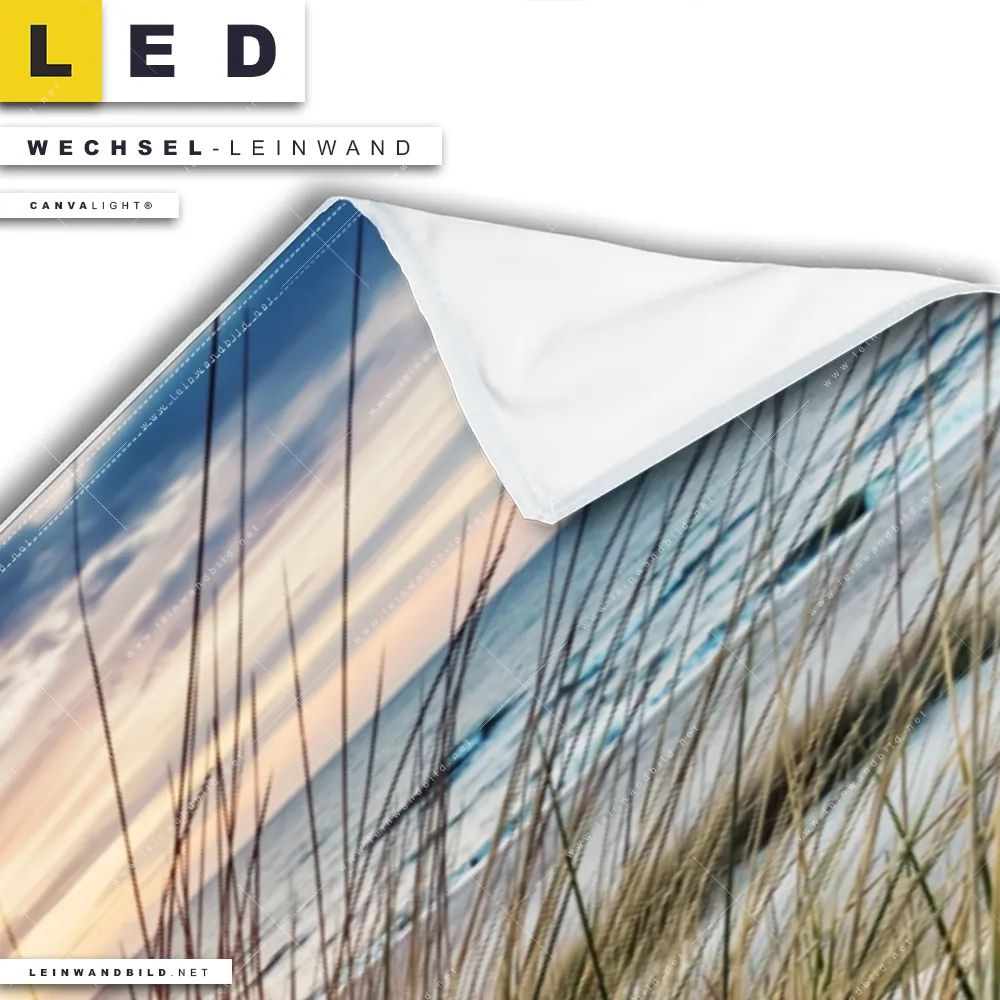 LED Wechsel-Leinwand Canvalight® TEX | Dünen und Meer | Panorama